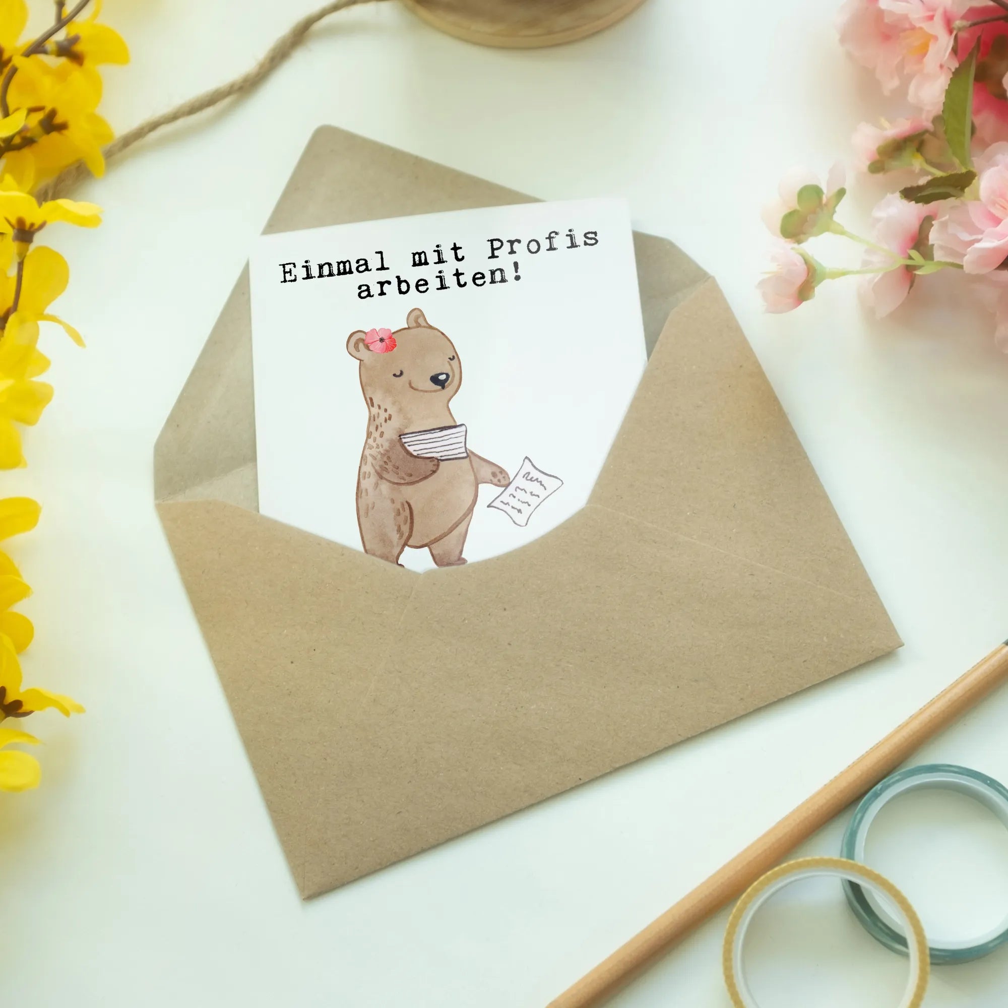 Die Grußkarte "Buchhalterin aus Leidenschaft" von Mr. & Mrs. Panda ist das perfekte Geschenk, um deiner Buchhalterin oder deinem Buchhalter eine besondere Freude zu machen. Diese zauberhafte Klappkarte ist nicht nur ein liebevoll gestaltetes Stück Papier, sondern auch ein wunderbarer Weg, um Danke zu sagen. Mit ihrem fröhlichen Design und dem lustigen Motiv einer kleinen Buchhalter Bärendame, die liebevoll bei der Arbeit am Schreibtisch sitzt, bringt die Karte garantiert ein Lächeln ins Gesicht und vermittelt Wertschätzung.