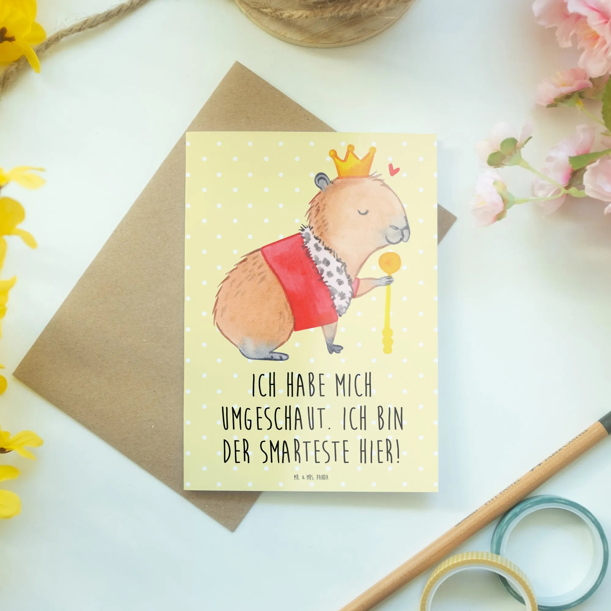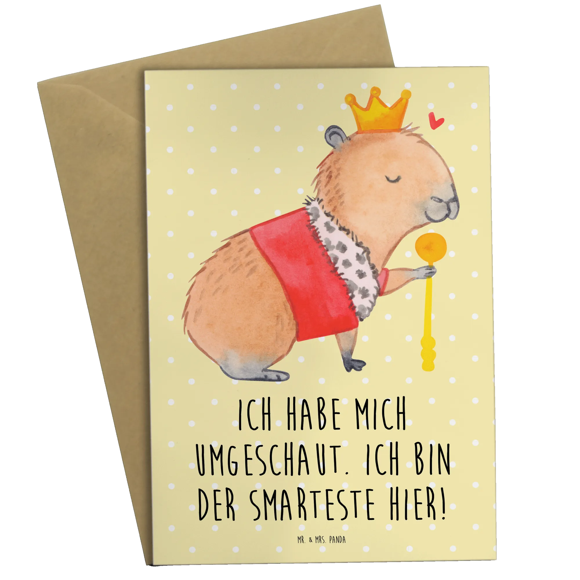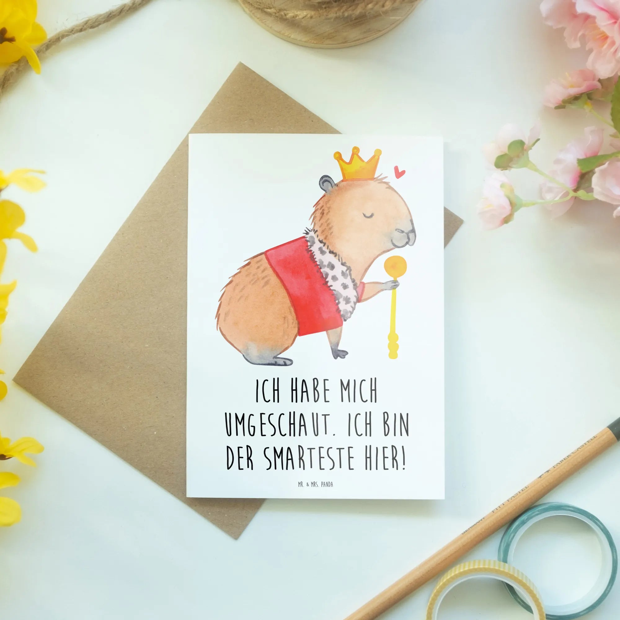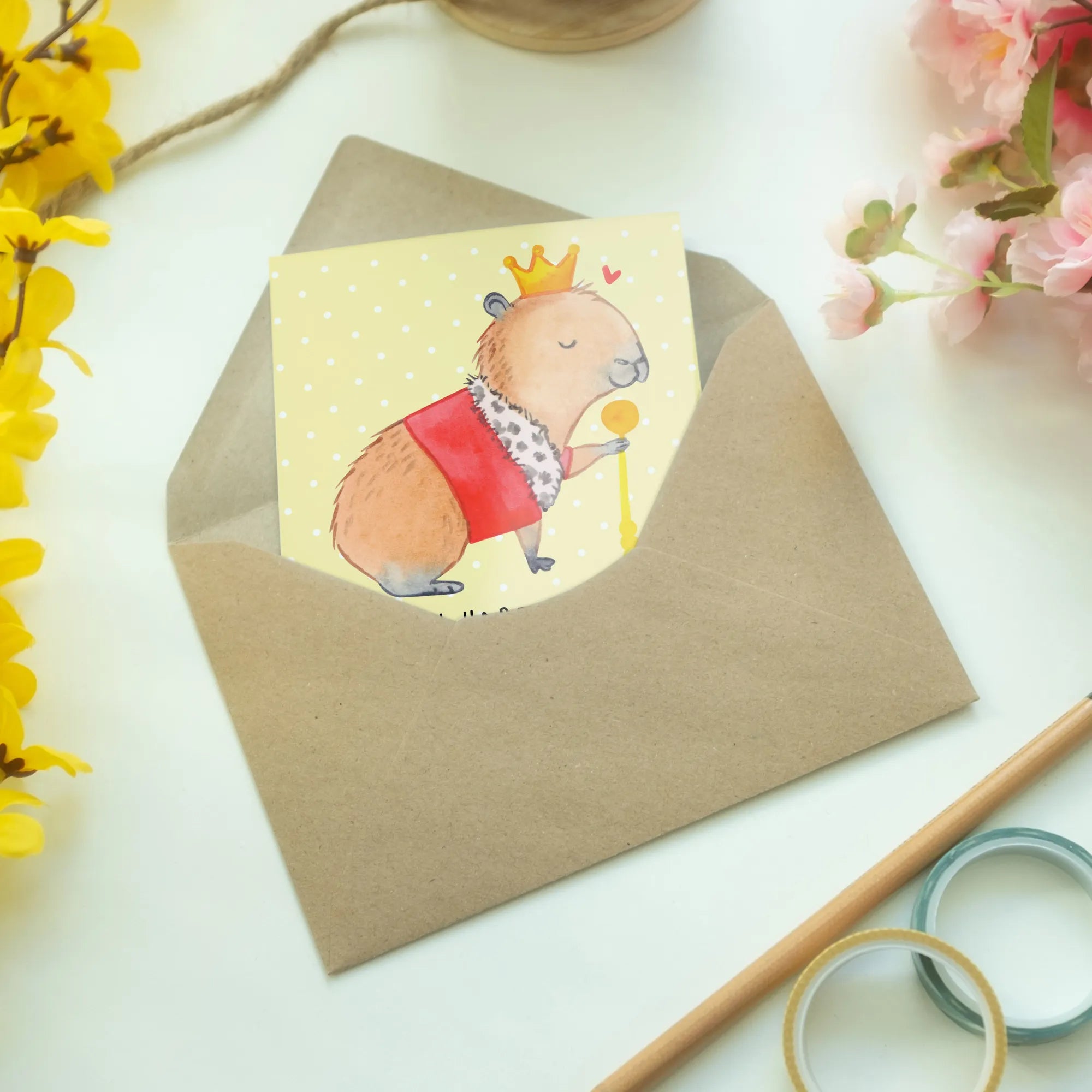 Wenn Du auf der Suche nach einem liebevollen und lustigen Geschenk bist, dann ist unsere Grußkarte mit dem Motiv "Capybara König" aus der beliebten Small World Kollektion von Mr. & Mrs. Panda genau das Richtige für Dich!