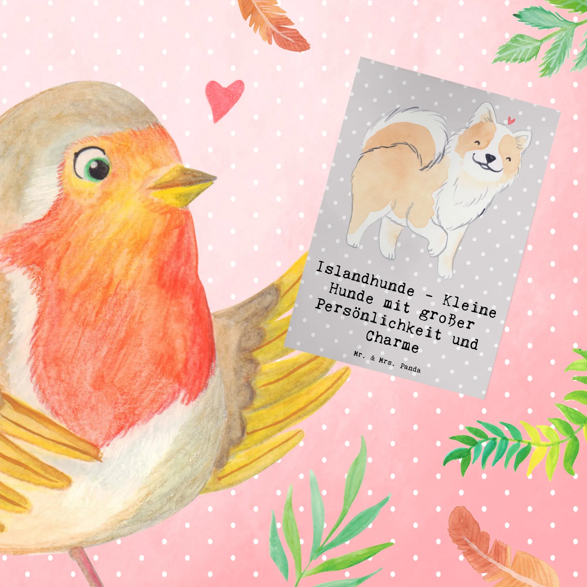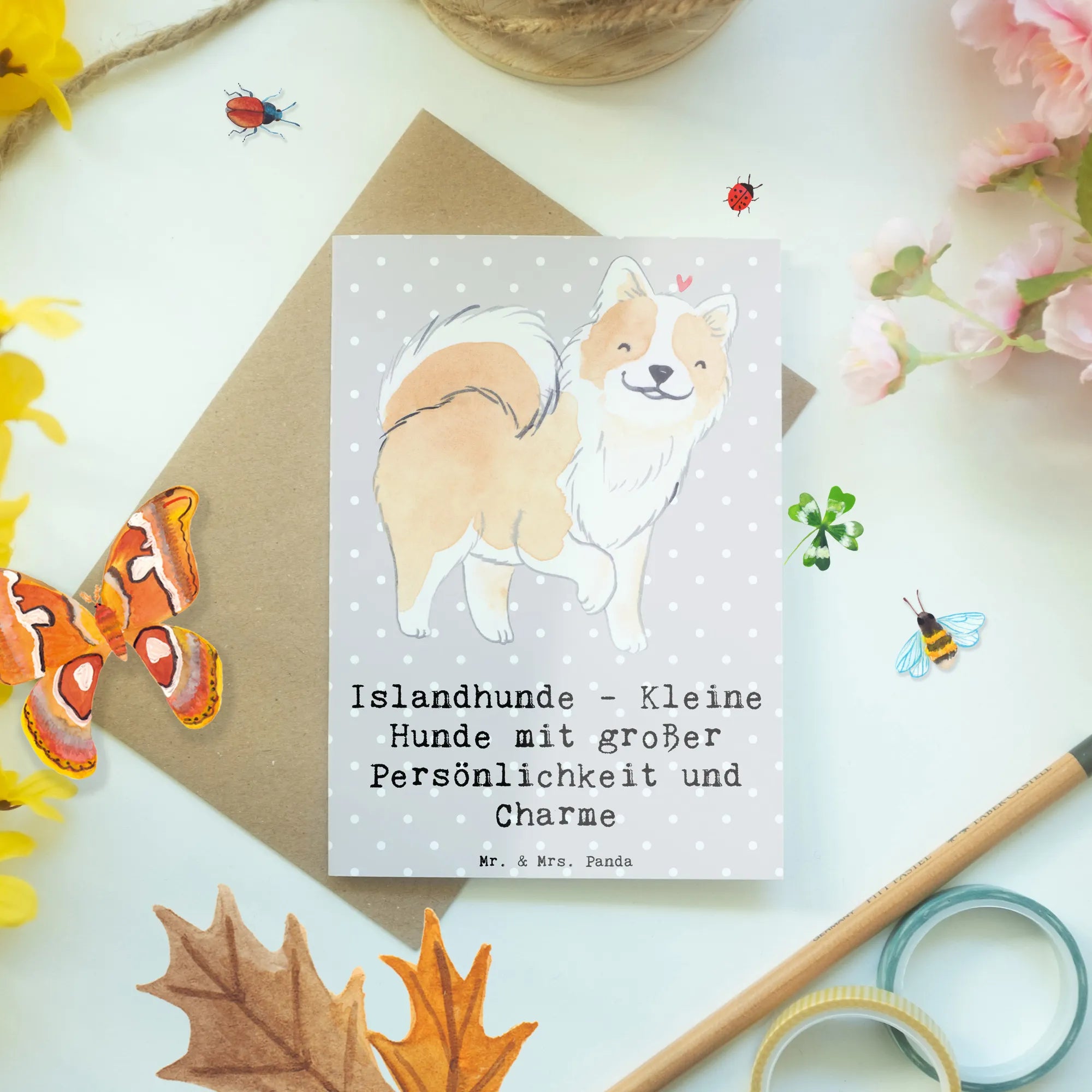 Die zauberhafte Grußkarte "Islandhund" aus der Hunderassen-Kollektion von Mr. & Mrs. Panda ist das perfekte Geschenk für Hundeliebhaber! Diese wundervolle Karte begeistert mit ihrem charmanten Motiv, das die kleinen Islandhunde zeigt, welche so viel Persönlichkeit und Charme besitzen.
