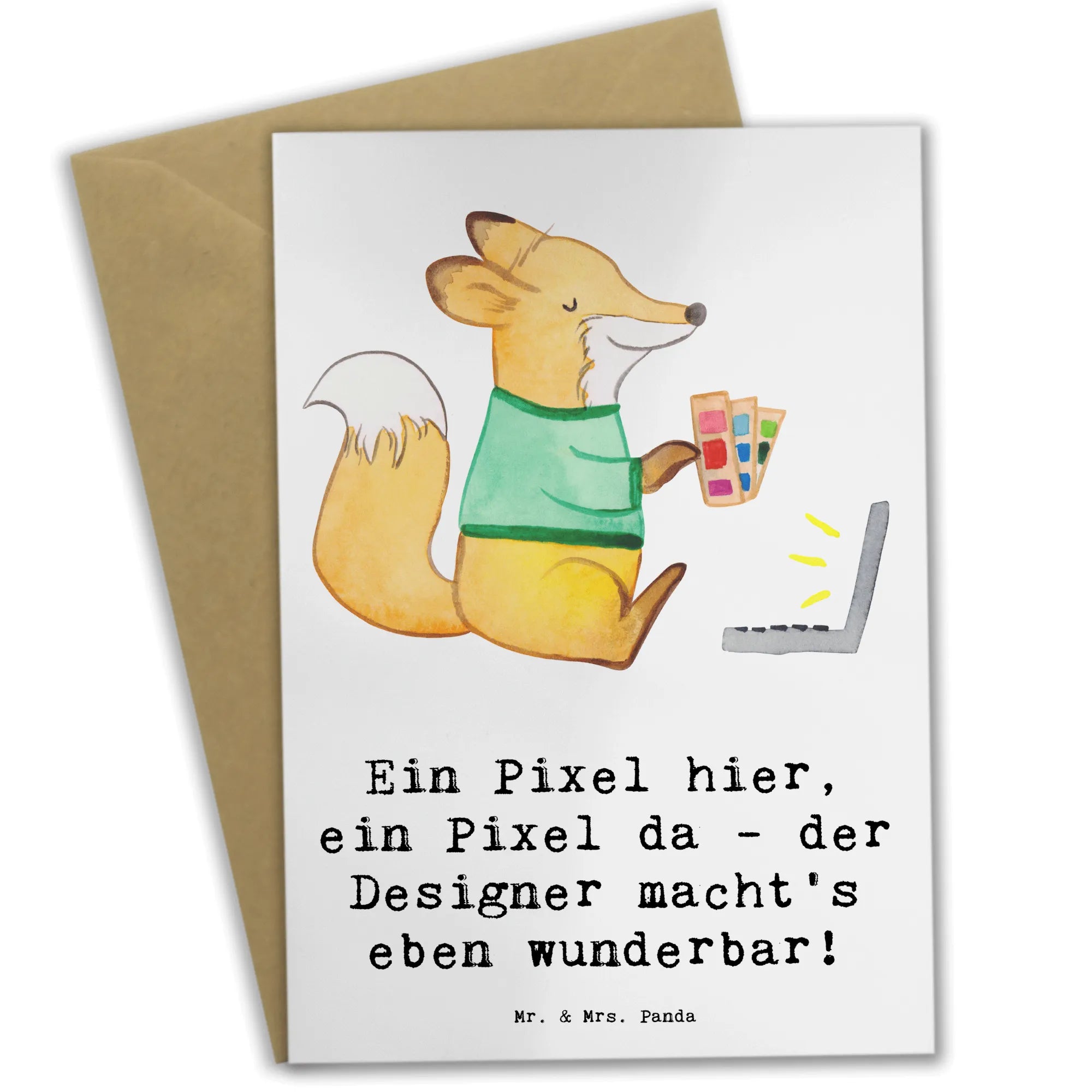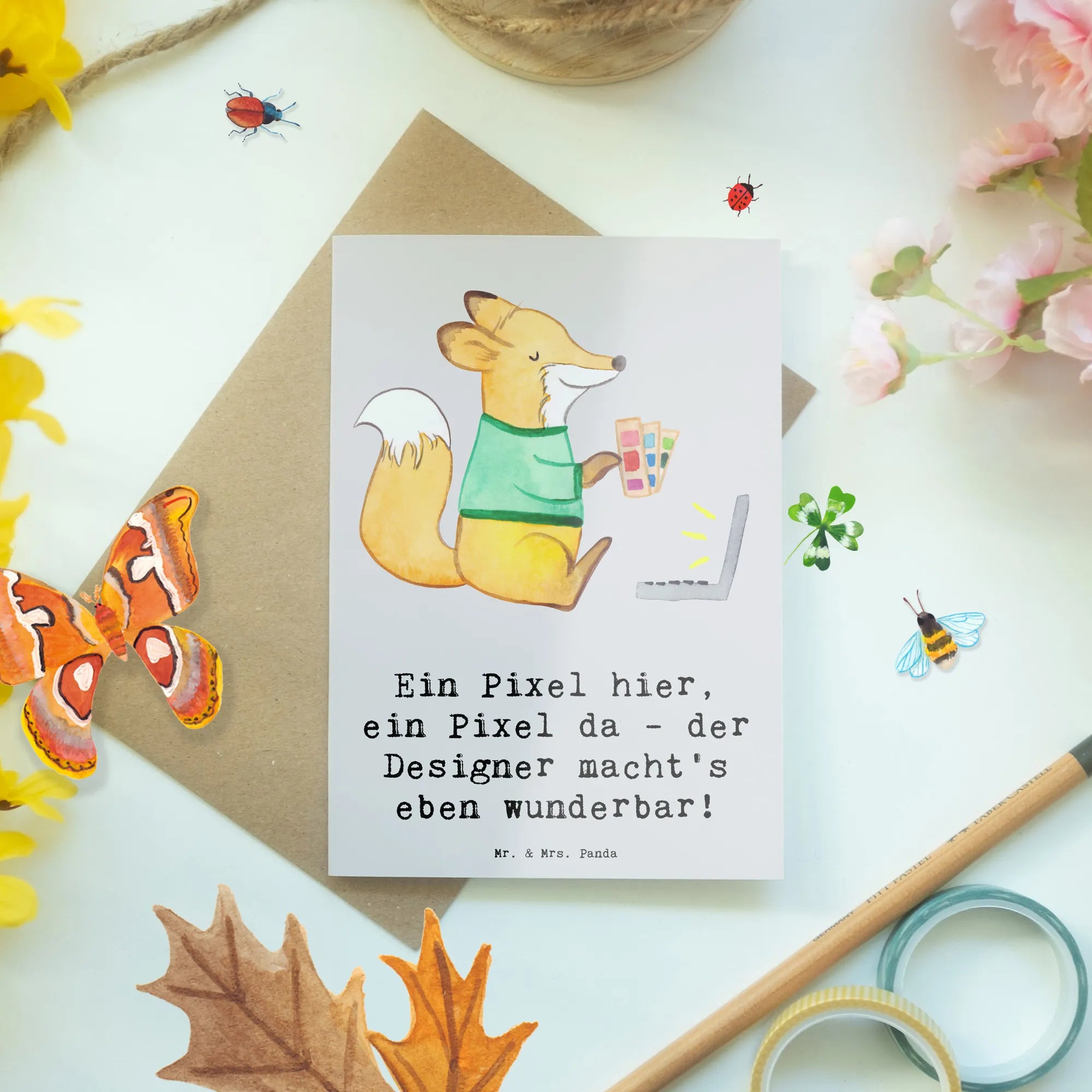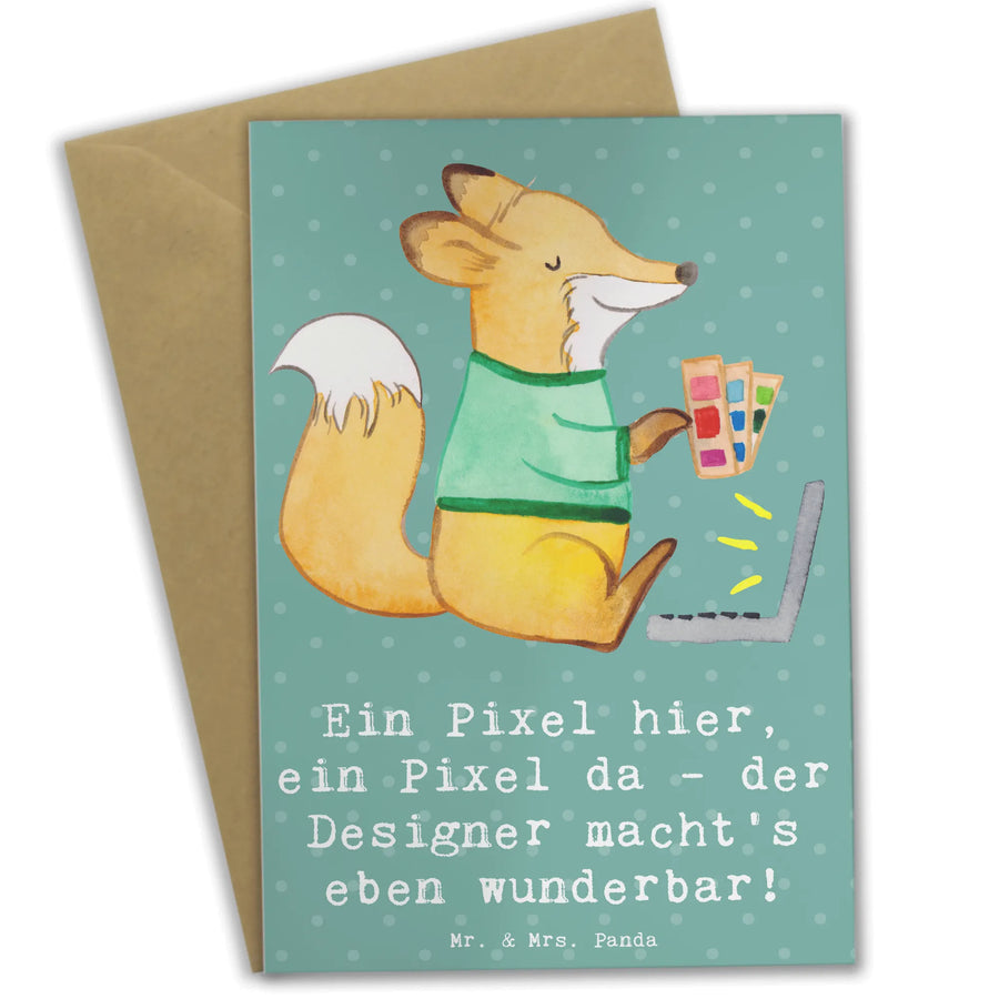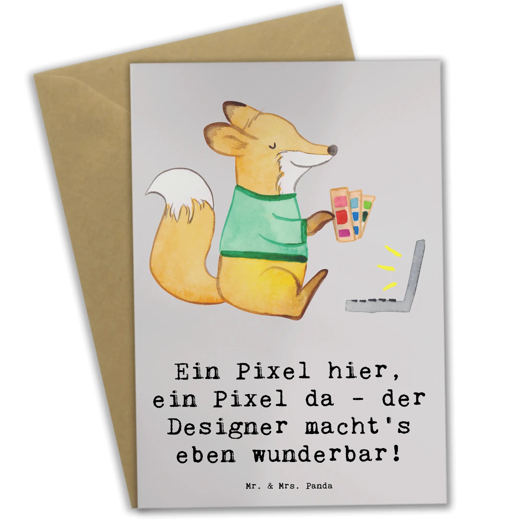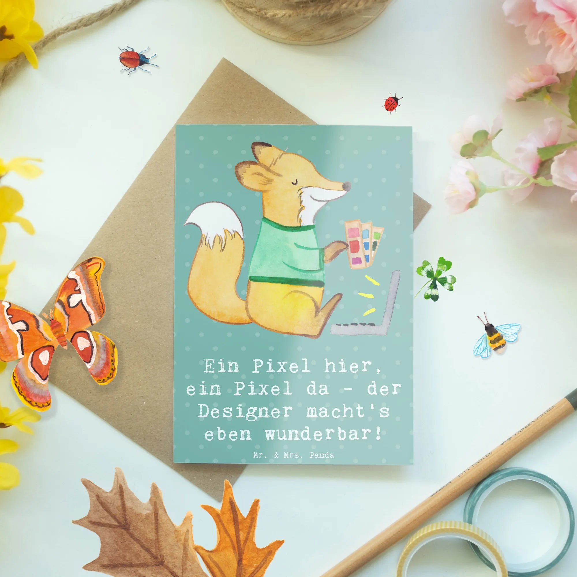 Die Grußkarte "Designer" von Mr. & Mrs. Panda ist das perfekte Geschenk für kreative Köpfe und alle, die die Welt der Gestaltung lieben. Diese wunderschöne und einzigartige Karte aus hochwertigem 300 Gramm Karton ist nicht nur ein echter Hingucker, sondern auch ein Ausdruck von Wertschätzung für die Zunft der Designer. Ob für einen Berufsabschied, ein Jubiläum oder einfach nur so, um Danke zu sagen - diese Karte passt perfekt zu jedem Anlass.