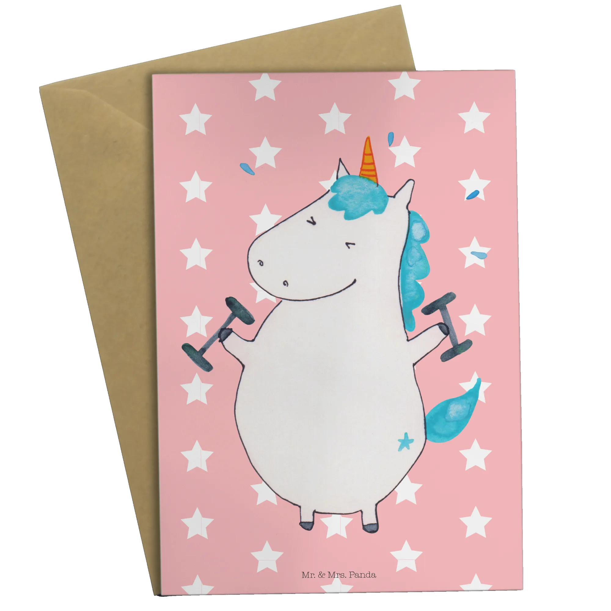 Die Grußkarte "Einhorn Fitness" aus der einzigartigen Einhorn Kollektion von Mr. & Mrs. Panda ist das perfekte Geschenk für alle Fitnessbegeisterten und die, die es werden möchten! Diese zauberhafte Karte zeigt ein fröhliches Einhorn mit Hanteln, das motiviert und ein Lächeln ins Gesicht zaubert.