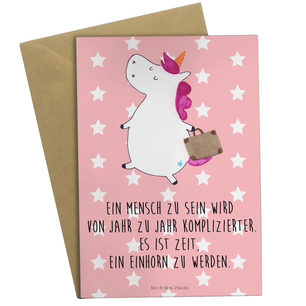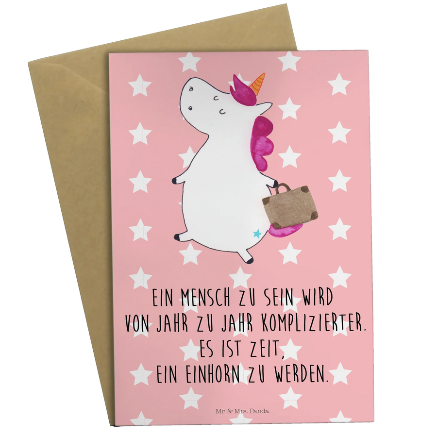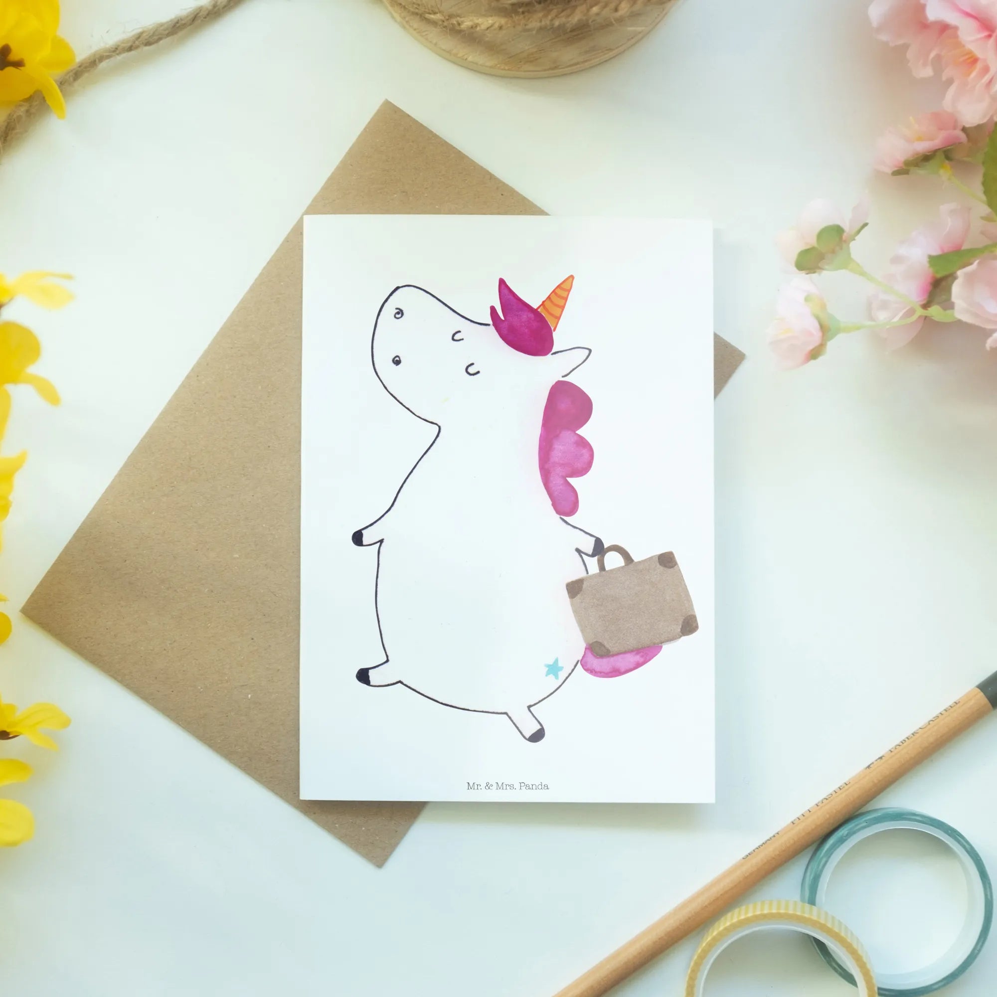 Du bist auf der Suche nach dem perfekten Geschenk für einen Einhorn-Liebhaber? Unsere wunderschöne Grußkarte "Einhorn Koffer" aus der Einhorn-Kollektion von Mr. & Mrs. Panda ist genau das Richtige!