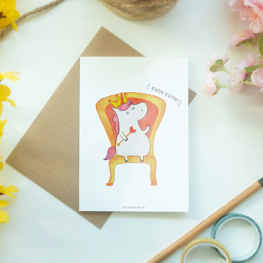 Eine wunderschöne und einzigartige Grußkarte von Mr. & Mrs. Panda mit dem zauberhaften Motiv einer Einhorn-Prinzessin. Diese Karte ist das perfekte Geschenk für alle, die die magische Welt der Einhörner und Prinzessinnen lieben. Egal ob zum Geburtstag, zu Feiern oder einfach nur so, die Grußkarte bringt Freude und Glück.