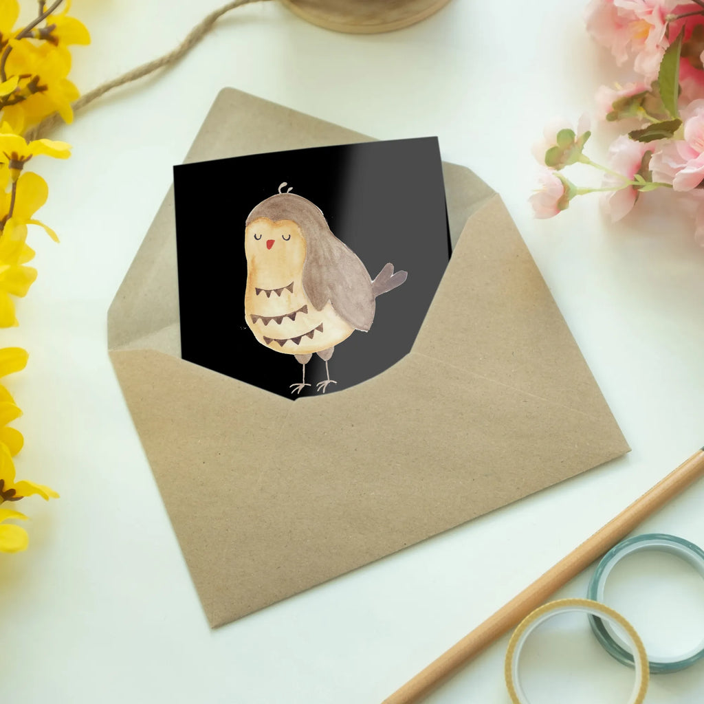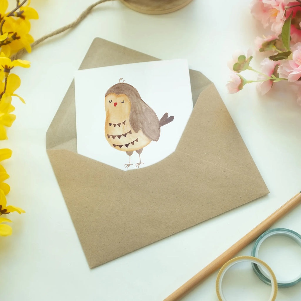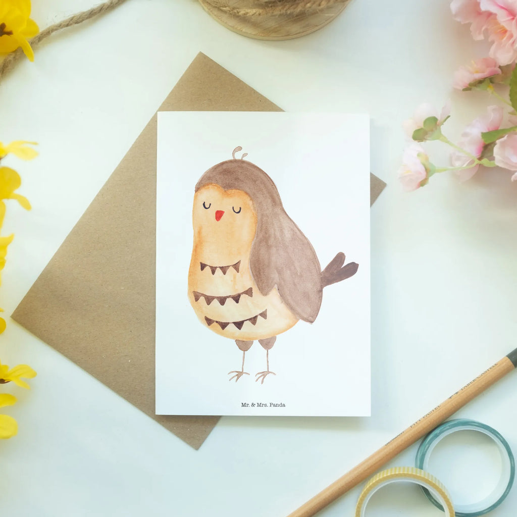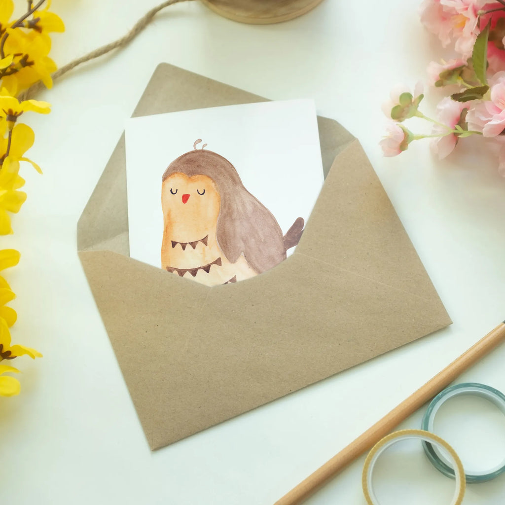Die wunderschöne Grußkarte "Eule Zufrieden" von Mr. & Mrs. Panda ist das perfekte Geschenk für viele festliche Anlässe. Egal, ob du einen lieben Menschen zum Geburtstag, zur Hochzeit oder einfach nur so überraschen möchtest, diese Karte bringt garantiert ein Lächeln auf die Lippen. Mit ihrem süßen Eulenmotiv und dem hochwertigen, hochglänzend veredelten Karton strahlt sie eine besondere Eleganz aus.