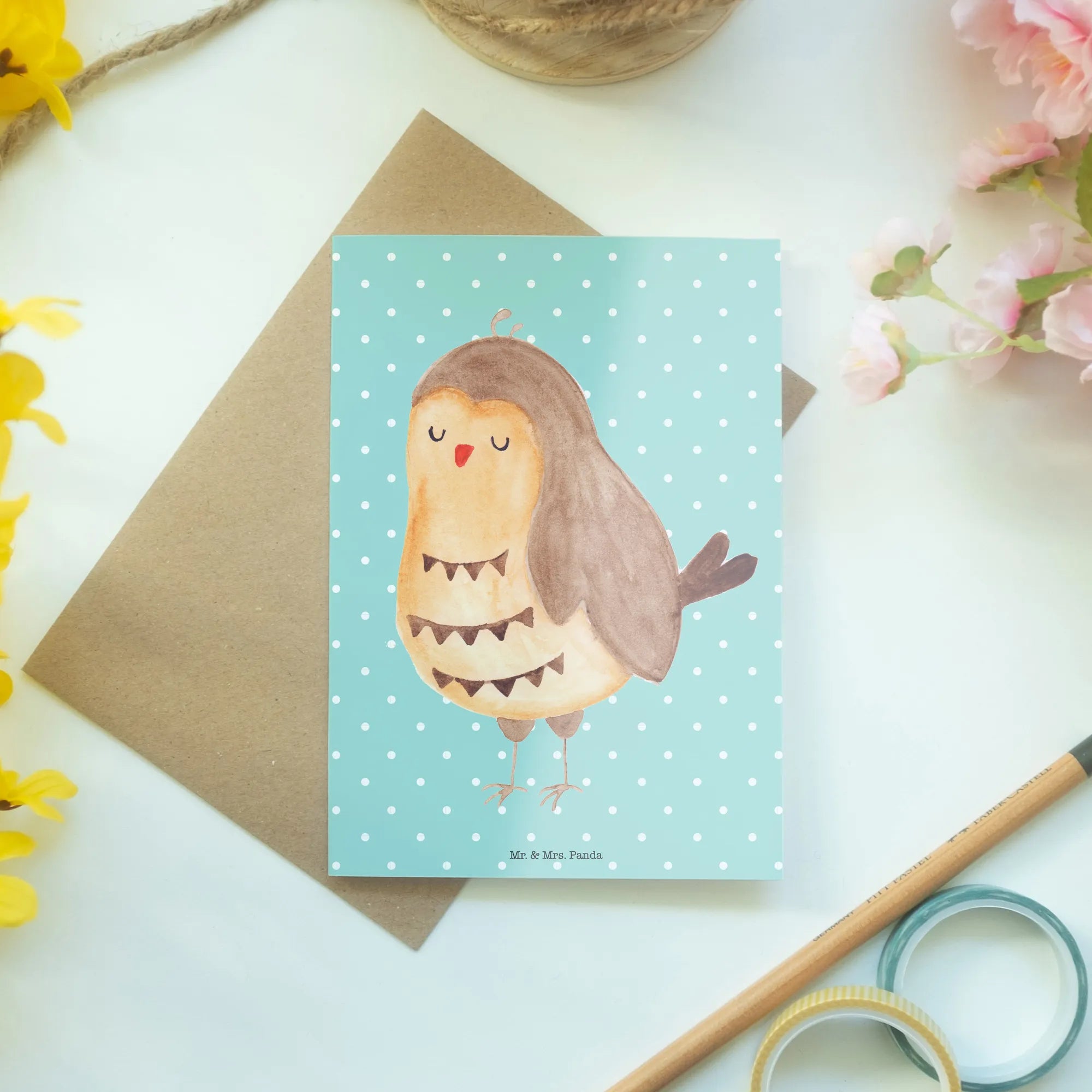 Lass Dich von der Eulen-Kollektion von Mr. & Mrs. Panda mit ihren charmanten Motiven und lustigen Sprüchen begeistern und finde die ideale Karte für jeden Anlass! Erwecke mit der Eule Zufrieden das Lächeln in den Gesichtern Deiner Liebsten und schaffe unvergessliche Momente voller Wärme und Zuneigung.