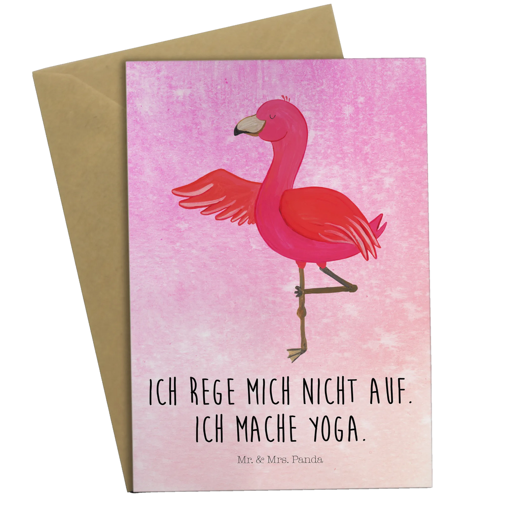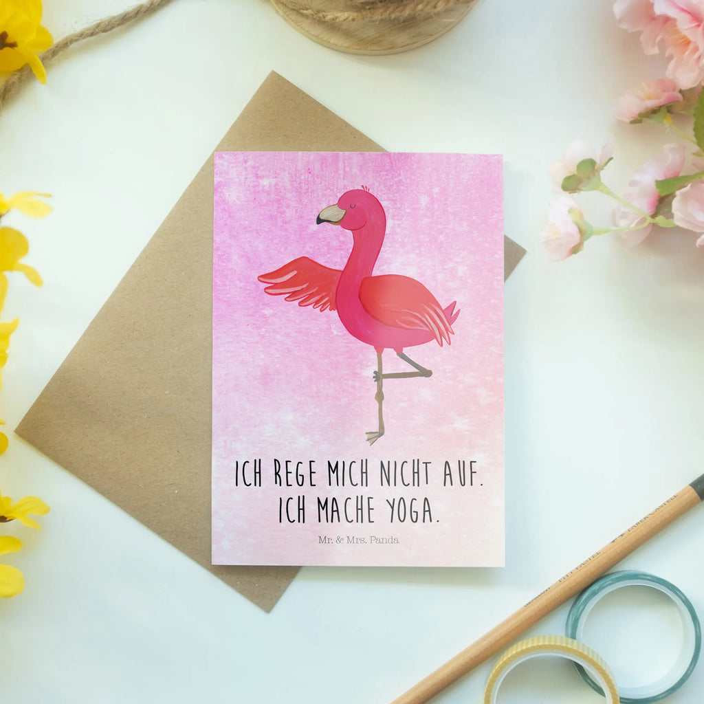 Die wunderschöne Grußkarte aus der Flamingo-Kollektion von Mr. & Mrs. Panda ist der perfekte Begleiter für deine besonders entspannten Momente. Sie zeigt ein liebevoll handgezeichnetes Motiv eines Flamingos, der eine Yoga-Pose einnimmt, und versprüht pure gute Laune! Mit dem spritzigen Slogan "Ich rege mich nicht auf. Ich mache Yoga." ist diese Karte nicht nur ein echter Hingucker, sondern bringt auch eine positive Botschaft mit sich.