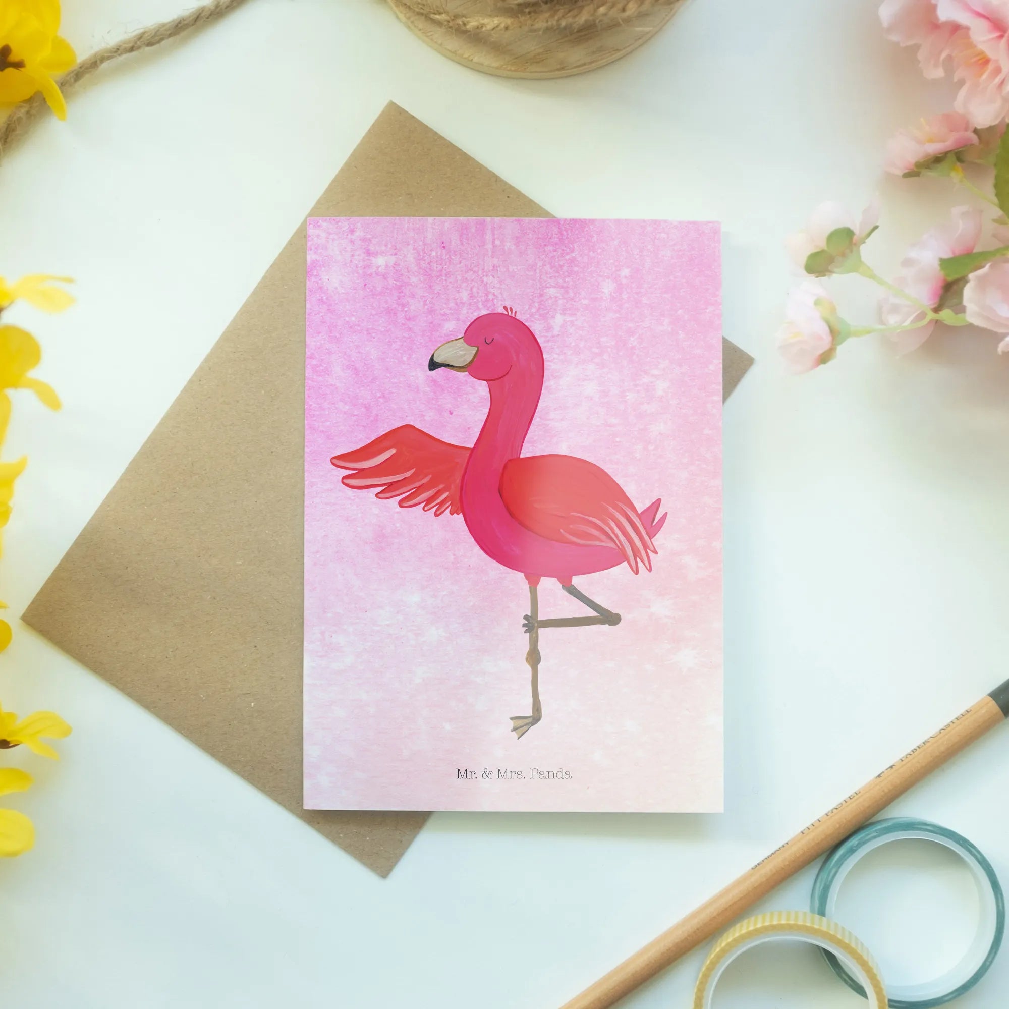 Grußkarte Flamingo Yoga - mit Spruch - Aquarell Pink