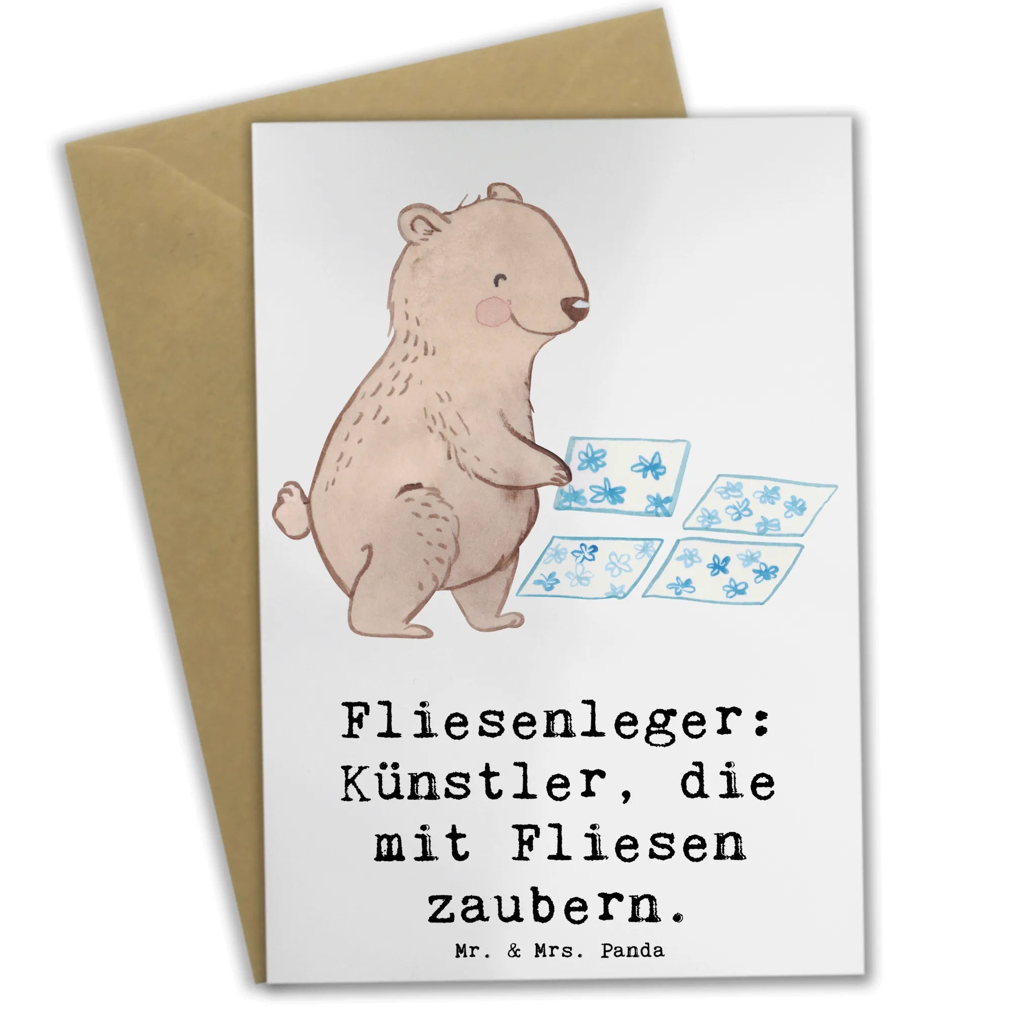 Entdecke die zauberhafte Grußkarte mit dem Motiv Fliesenleger von Mr. & Mrs. Panda! Diese wunderschöne und einzigartige Grußkarte ist genau das richtige Geschenk für alle, die begeistert von ihrem Handwerk sind oder jemanden mit einer besonderen Botschaft überraschen möchten.