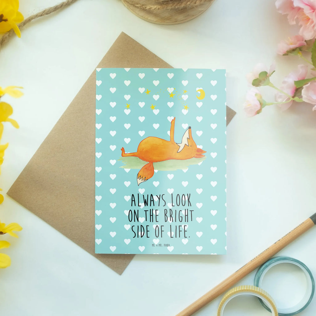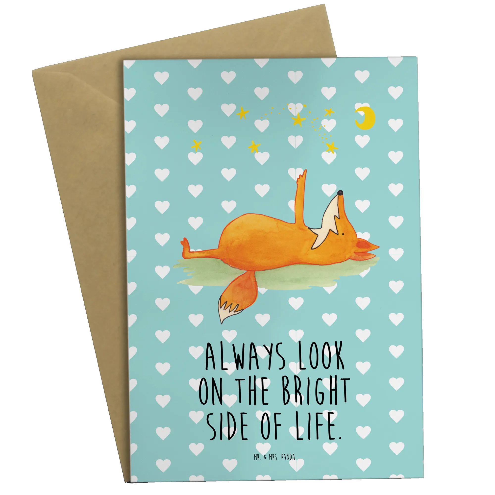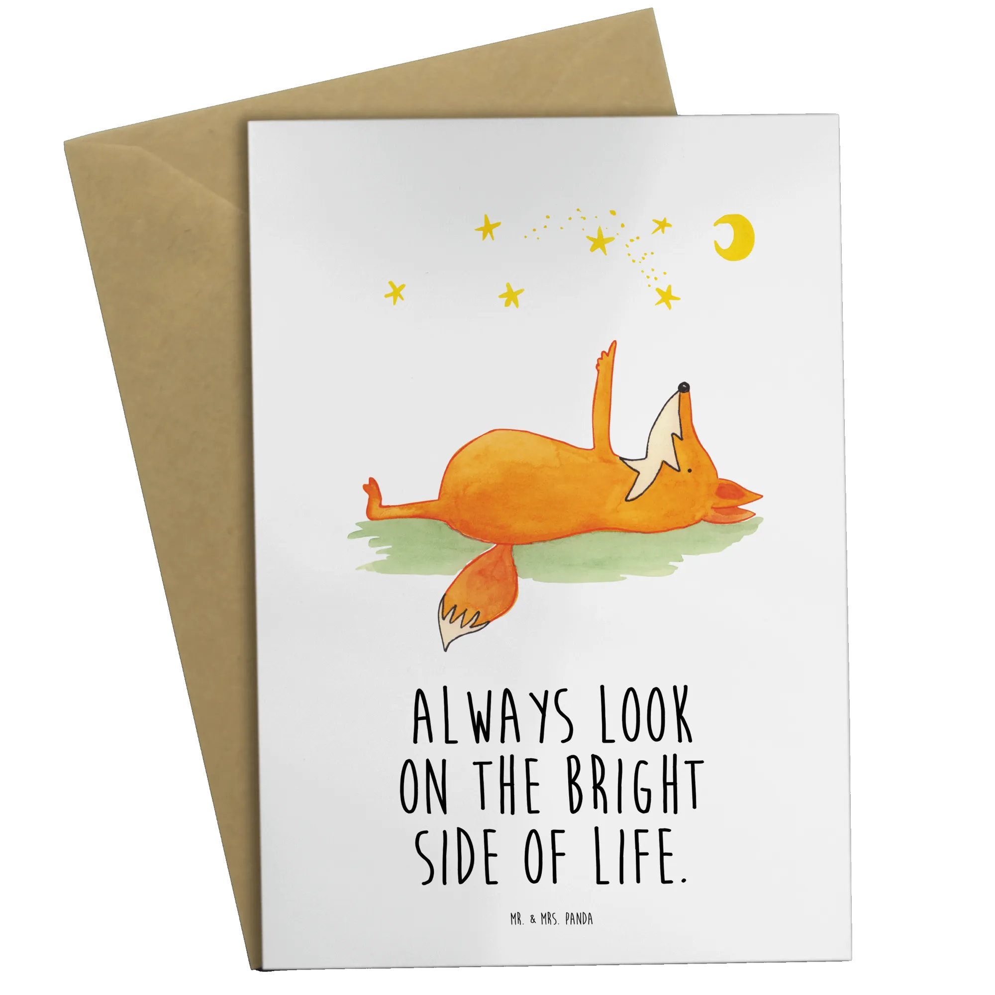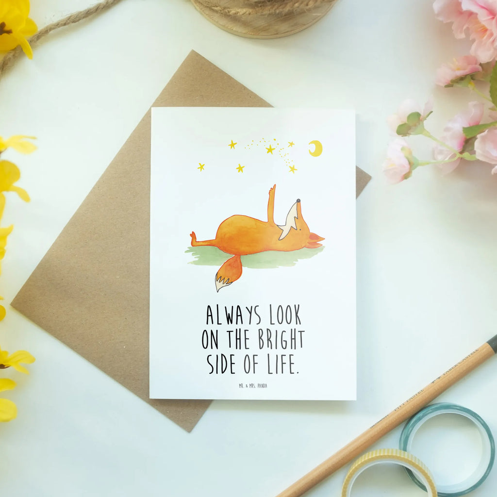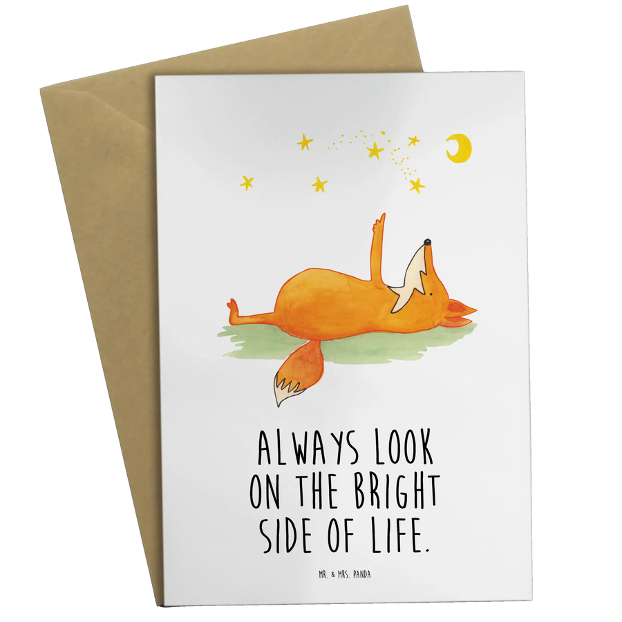 Mit dem bezaubernden Motiv eines kleinen Fuchses, der verträumt in den Sternenhimmel schaut, bringst du Freude und positive Vibes. Der charmante Spruch "Always look on the bright side of life" begleitet dich auf der Vorderseite und verwandelt jeden Gruß in eine kleine Liebeserklärung an das Leben.