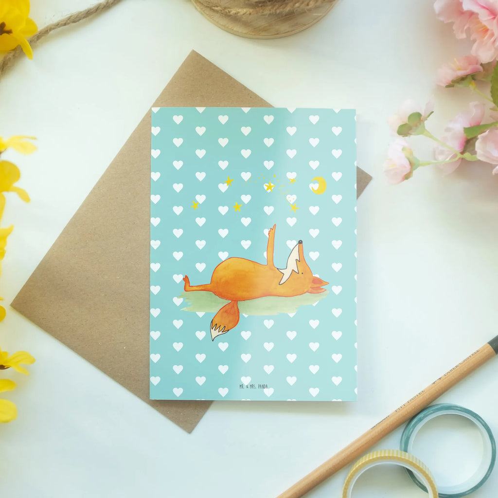Die Grußkarte "Fuchs Sterne" aus der bezaubernden Fuchs Kollektion von Mr. & Mrs. Panda ist das perfekte Geschenk für all jene, die das Besondere lieben! Egal, ob du sie zur Hochzeit, zum Geburtstag oder einfach nur für eine liebe Nachricht verschickst, diese Karte wird Herzen höher schlagen lassen.
