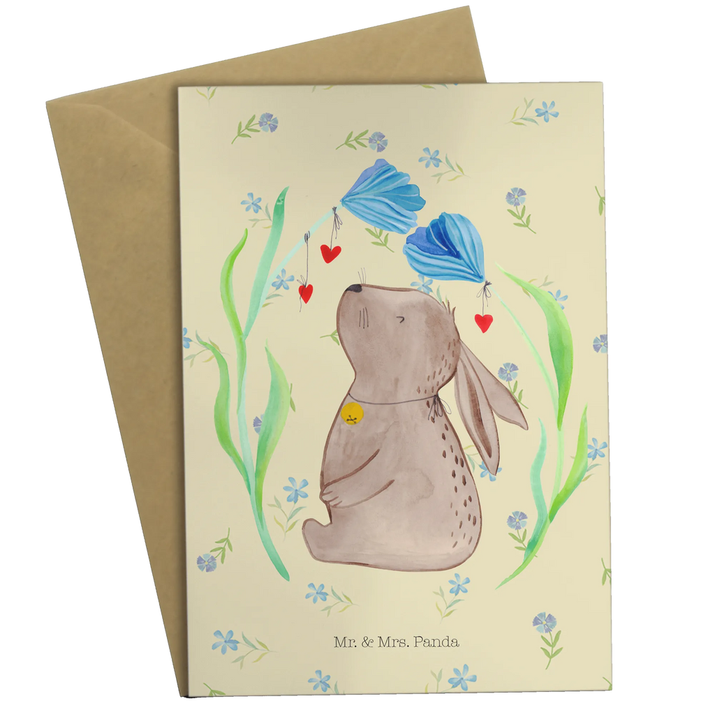 Entdecke die zauberhafte Grußkarte "Hase Blume" aus der exklusiven Oster-Kollektion von Mr. & Mrs. Panda! Diese wunderschöne und einzigartige Grußkarte ist nicht nur ein hübsches Accessoire, sondern auch das perfekte Geschenk für viele Anlässe, sei es eine Taufe, ein Geburtstag oder einfach, um jemandem eine Freude zu bereiten.