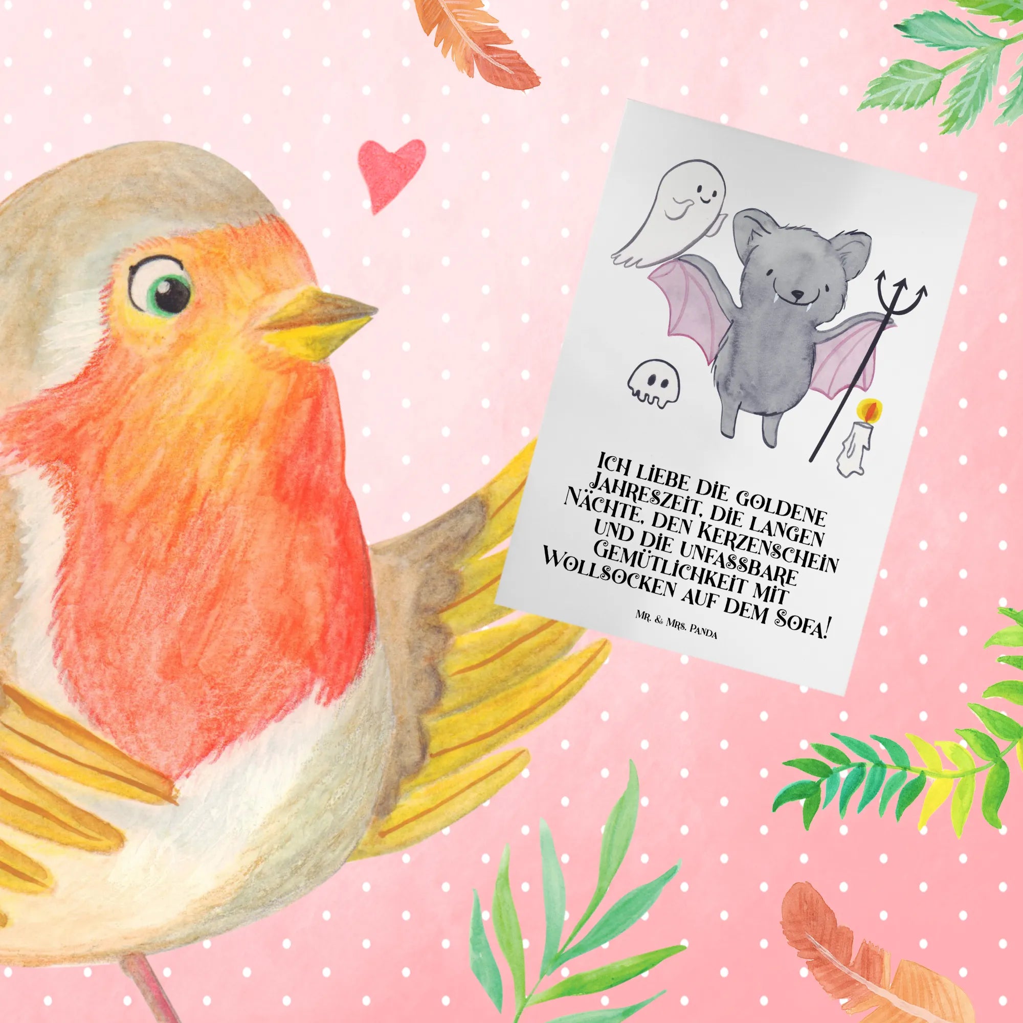 Die liebevoll gestaltete Grußkarte von Mr. & Mrs. Panda ist der perfekte Begleiter für die zauberhafte Jahreszeit von Halloween. Ob du nun eine gruselige Einladung für deine Gruselparty planst oder einfach nur einen lieben Gruß an deine Freunde senden möchtest – diese Karte ist stets die richtige Wahl! Mit ihrem einzigartigen Motiv und dem einladenden Text "Ich liebe die goldene Jahreszeit, die langen Nächte, den Kerzenschein und die unfassbare Gemütlichkeit mit Wollsocken auf dem Sofa!" versprüht sie wahre Herbstmagie.