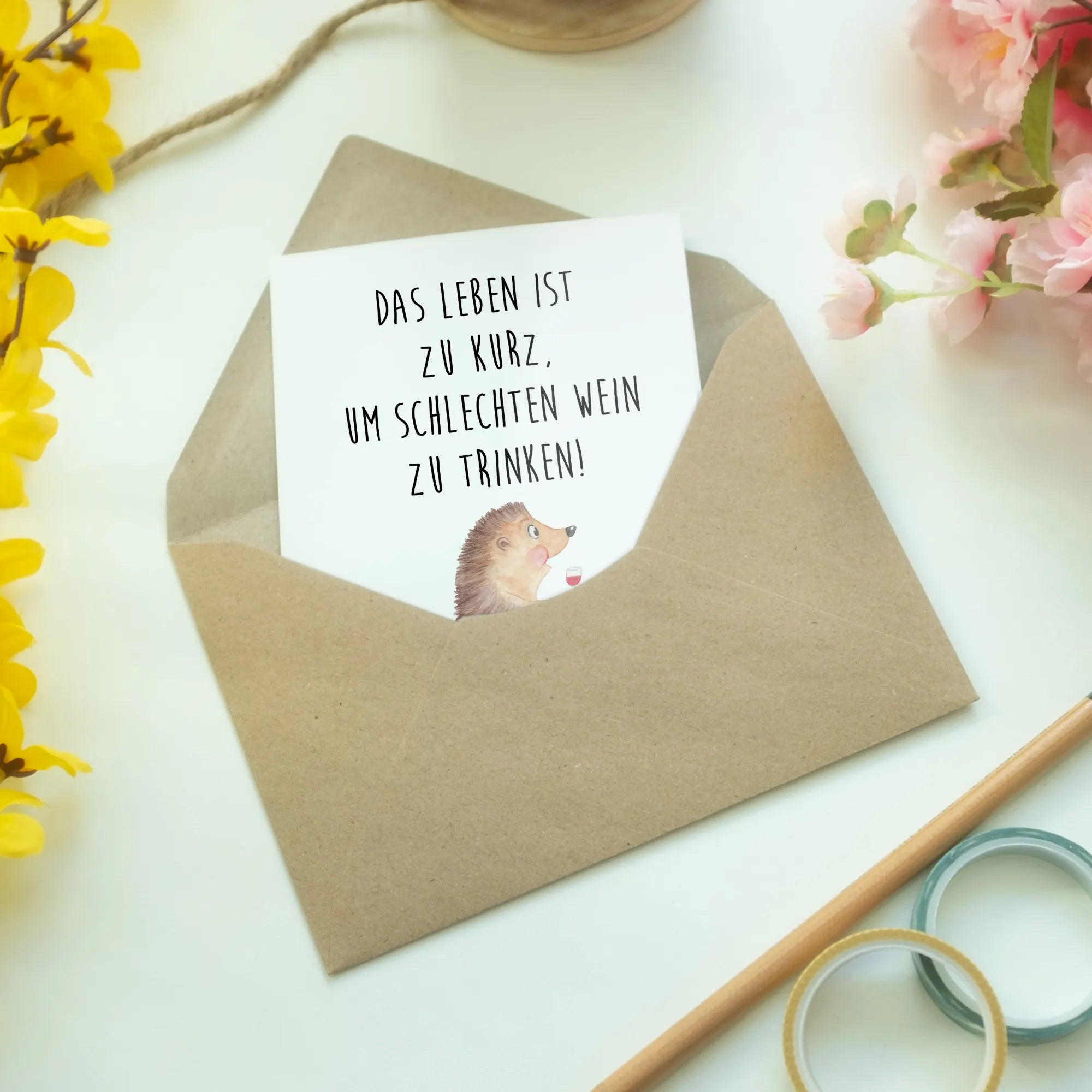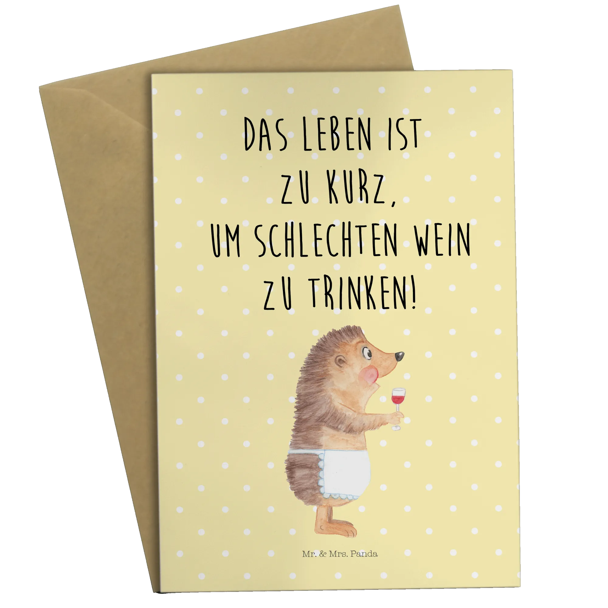 Bist du auf der Suche nach der perfekten Grußkarte für einen Weinliebhaber? Dann ist die Grußkarte "Igel mit Wein" aus der einzigartigen Small World Kollektion von Mr. & Mrs. Panda genau das Richtige! Diese liebevoll gestaltete Karte zeigt einen niedlichen Igel, der aus einem Rotweinglas schlürft. Das Motiv zieht garantiert alle Blicke auf sich und vermittelt eine fröhliche Botschaft: Das Leben ist zu kurz, um schlechten Wein zu trinken!