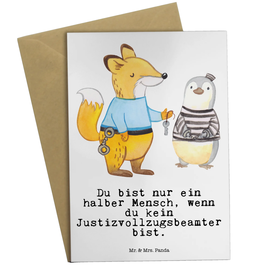 Du suchst das perfekte Geschenk für einen Justizvollzugsbeamten oder eine Justizvollzugsbeamtin? Mit der wundervollen Grußkarte "Justizvollzugsbeamter mit Herz" aus der einzigartigen Berufe-Kollektion von Mr. & Mrs. Panda machst du alles richtig!