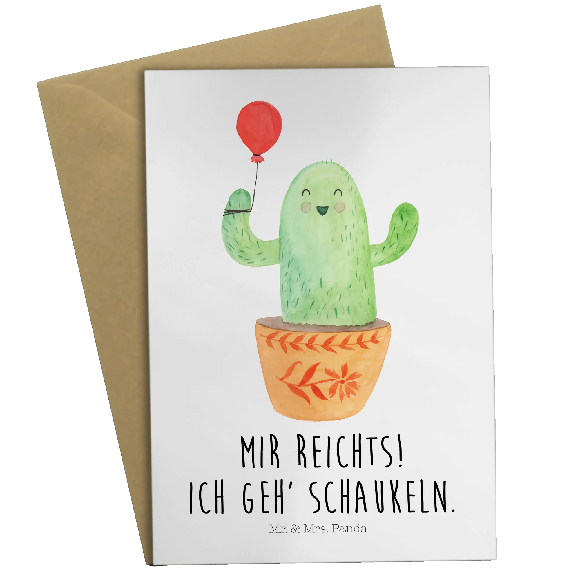 Die Kaktus-Luftballon-Karte bringt mit ihrem charmanten Design und dem Spruch "Mir reicht's! Ich geh‘ schaukeln." sofort ein Lächeln ins Gesicht. Die Karte ist ideal für zahlreiche Anlässe – sei es für eine Einladung zur Feier, eine Geburtstagsgratulation oder einfach nur, um mal zwischendurch Danke zu sagen.
