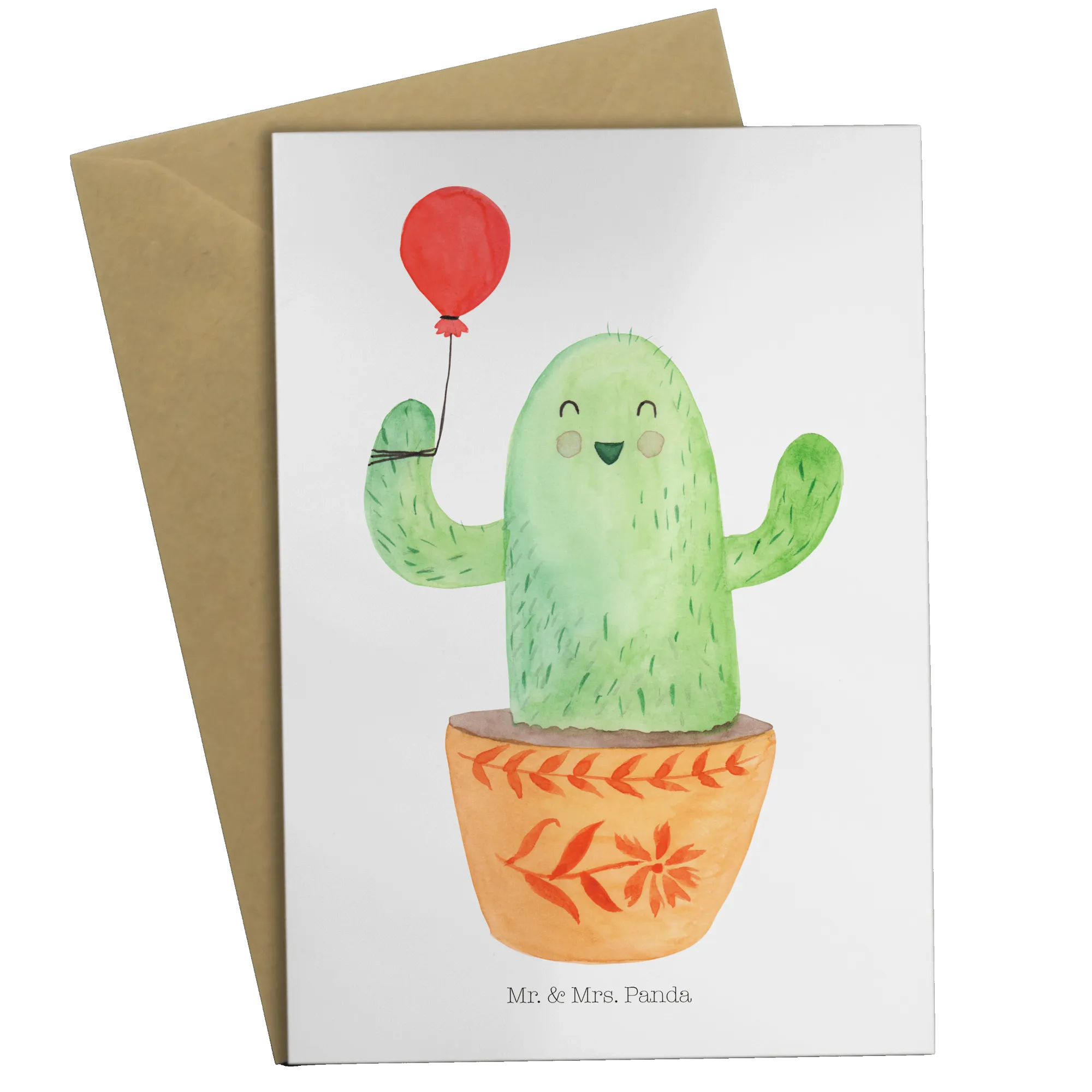 Die fröhliche Grußkarte mit dem Kaktus Luftballon aus der Kaktus - Kollektion von Mr. & Mrs. Panda ist das ideale Geschenk für alle, die ein Lächeln in das Gesicht eines Freundes zaubern möchten. Egal, ob zum Geburtstag, als Glückwunsch zur Prüfung oder einfach nur, um jemandem eine Freude zu machen – diese Karte bringt Farbe und Freude in jeden Alltag!