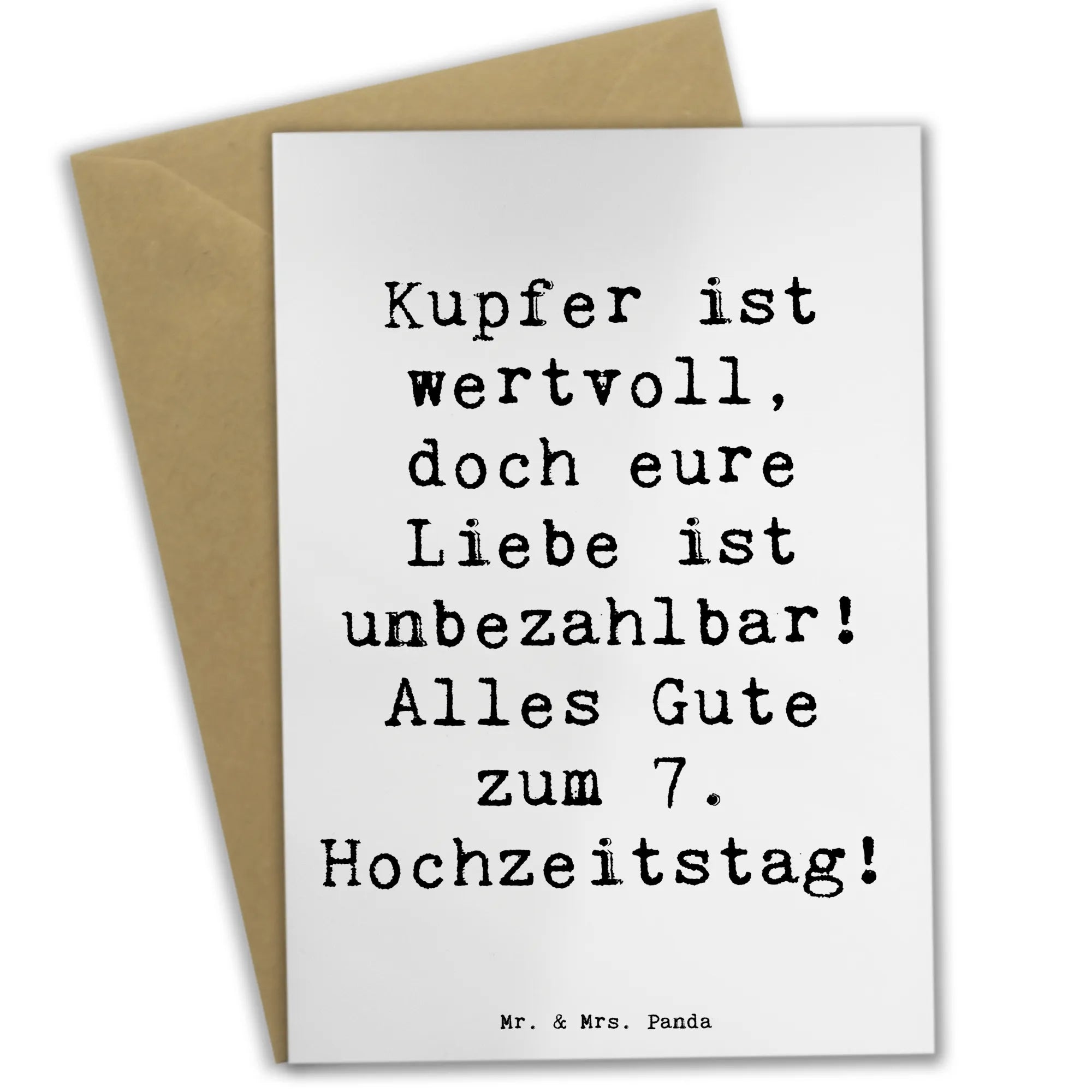Hol dir jetzt die Grußkarte 7. Hochzeitstag Kupferhochzeit von Mr. & Mrs. Panda und mache den Tag ganz besonders. Verliebe dich in die Magie des Moments und die Kraft schöner Worte. ❤️