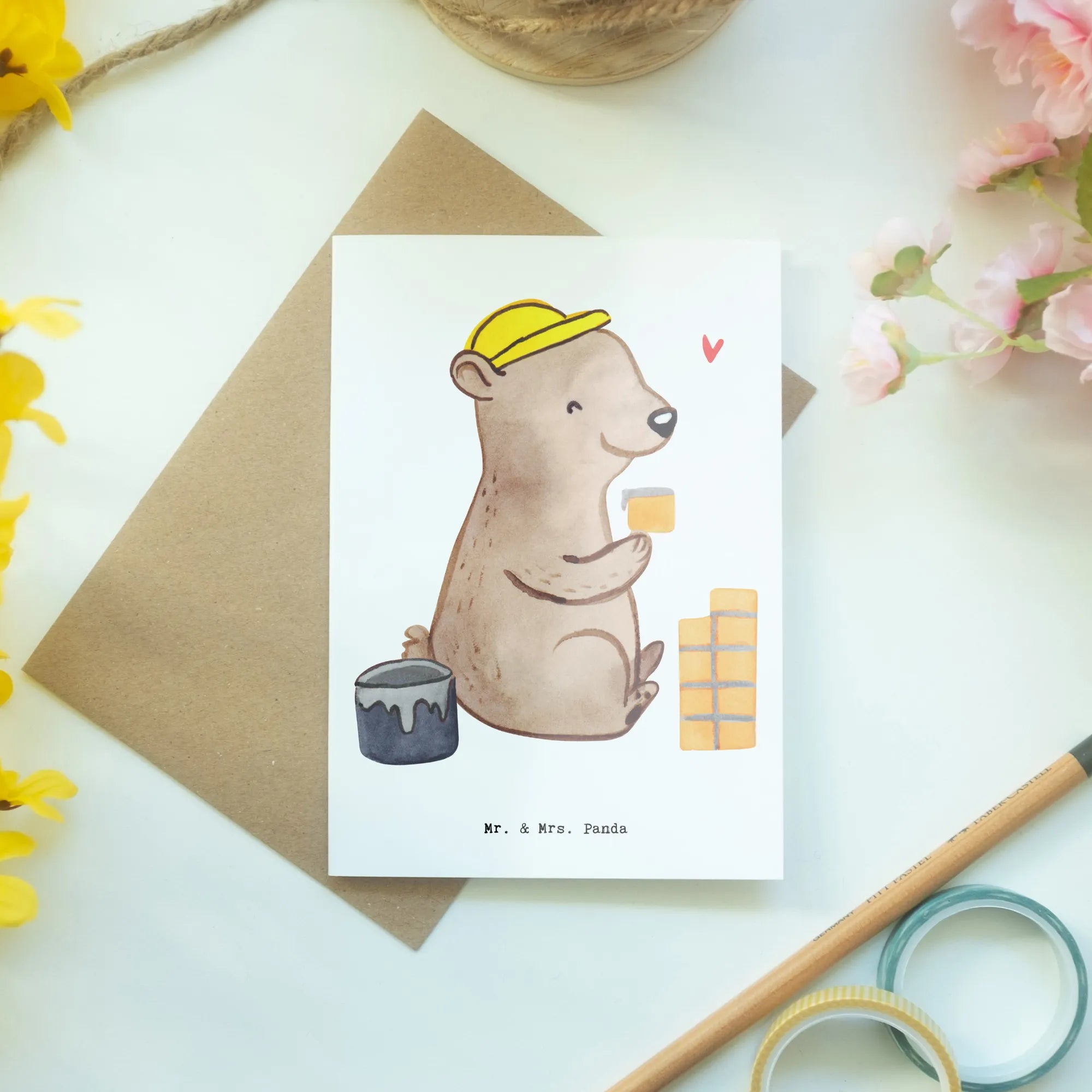 Die Grußkarte "Maurer mit Herz" aus der einzigartigen Berufe-Kollektion von Mr. & Mrs. Panda ist das perfekte Geschenk für jeden Maurer und Handwerker. Egal ob zur Gesellenprüfung, zum Abschied oder als Glückwunsch zum Jubiläum – diese Karte bringt Freude und Wertschätzung in jeden Moment.