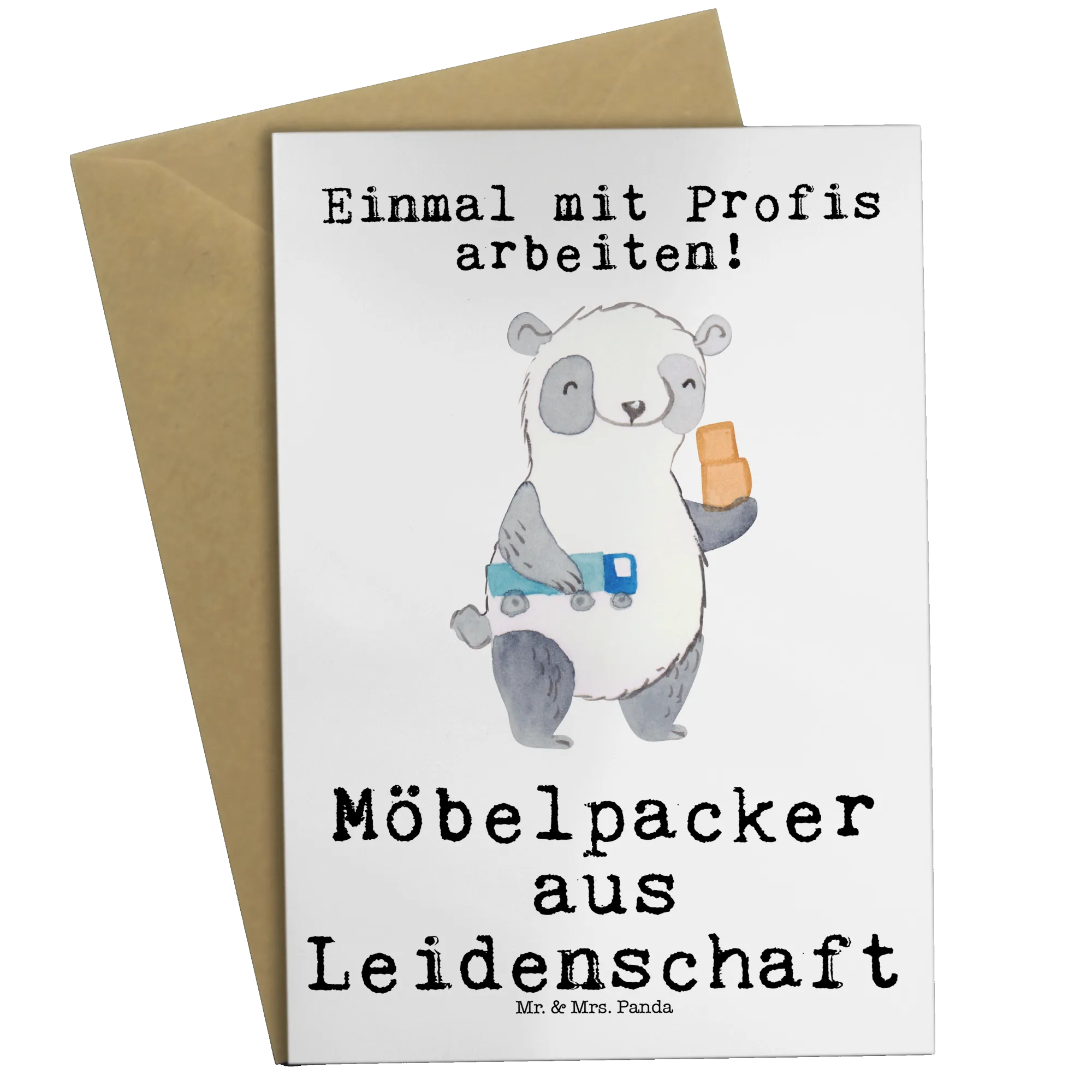 Die Grußkarte "Möbelpacker aus Leidenschaft" von Mr. & Mrs. Panda ist das perfekte Geschenk für alle, die im Bereich Umzüge tätig sind. Egal ob Du einen Umzugshelfer, einen Kollegen bei der Umzugsfirma oder einfach nur einem Freund, der gerade umzieht, eine Freude machen möchtest, diese Karte bringt ein Lächeln ins Gesicht.