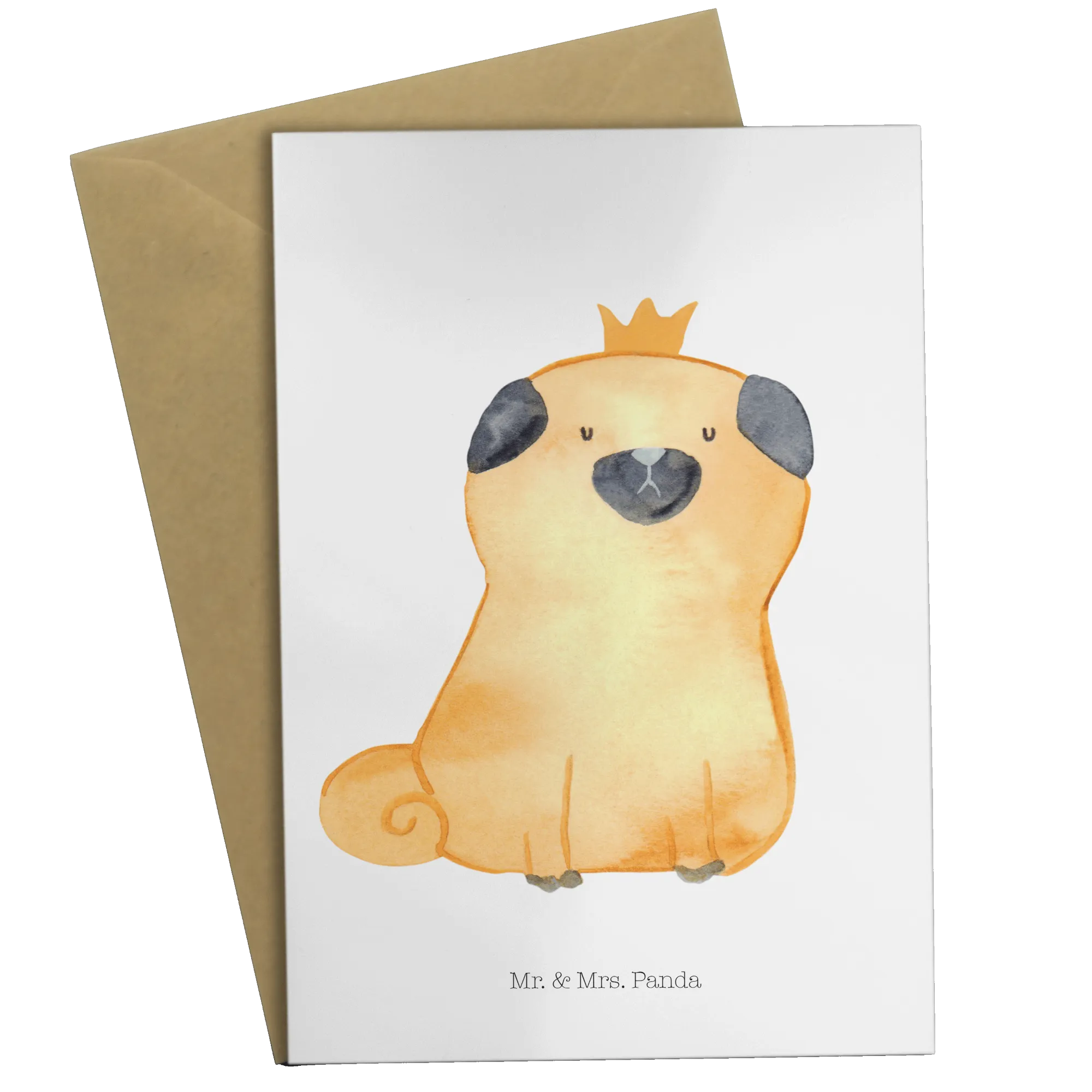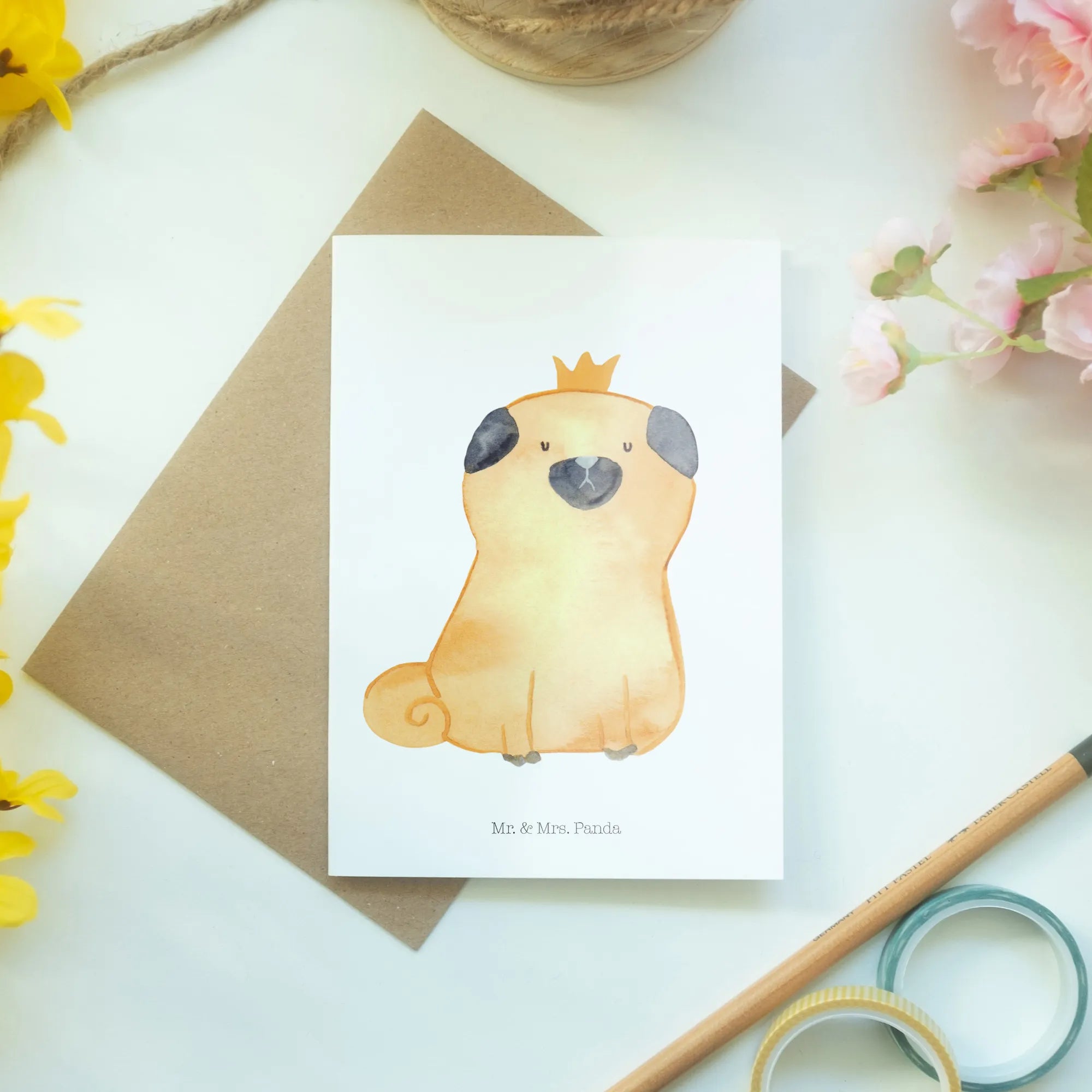 Grußkarte Mops Krone - mit Spruch - Weiß