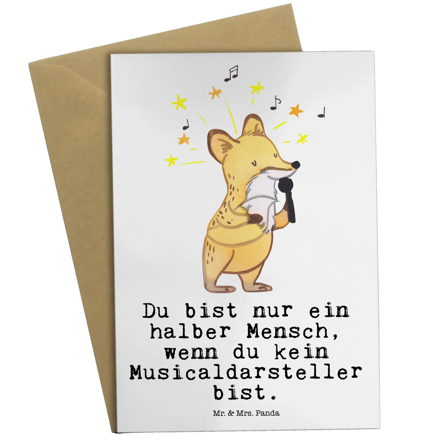 Die Grußkarte "Musicaldarsteller mit Herz" von Mr. & Mrs. Panda ist das perfekte Geschenk für alle Fans von Musicals und Bühnenperformances. Mit ihrem süßen Design und dem motivierenden Spruch "Du bist nur ein halber Mensch, wenn du kein Musicaldarsteller bist", spricht diese Karte sowohl große als auch kleine Herzen an.