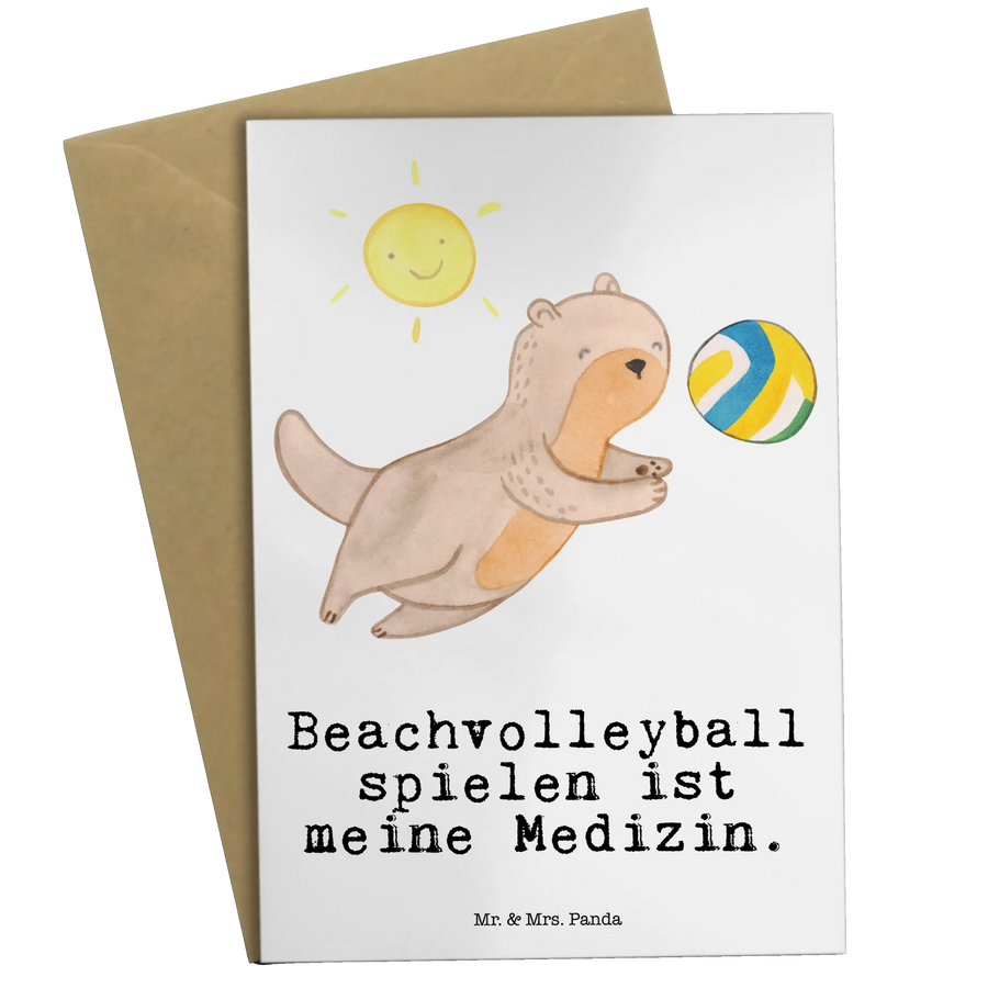 Die Grußkarte "Otter Beachvolleyball Medizin" von Mr. & Mrs. Panda ist das perfekte Geschenk für alle Sportbegeisterten, die mit Leidenschaft ihrem Hobby nachgehen. Diese wunderschöne Karte, bedruckt auf hochwertigem Karton, zeigt einen süßen Otter, der mit vollem Körpereinsatz Beachvolleyball spielt.