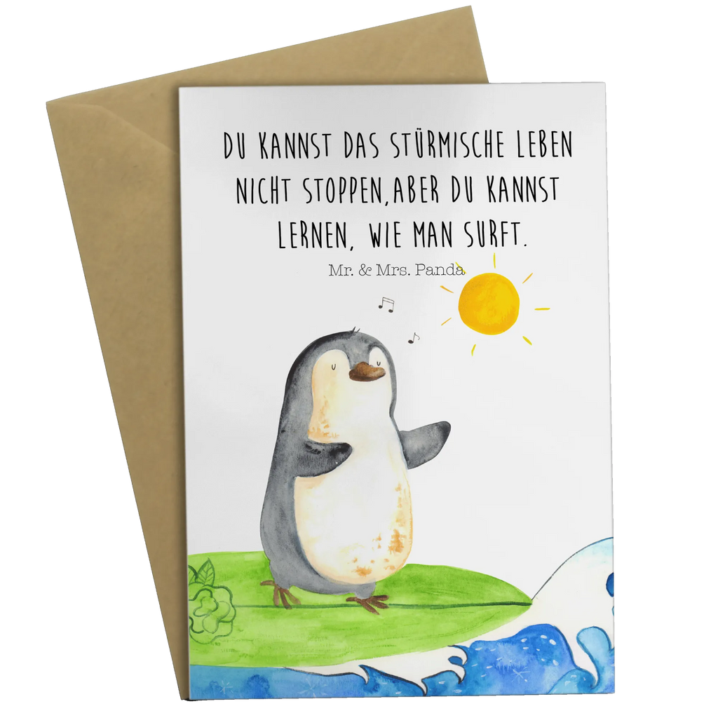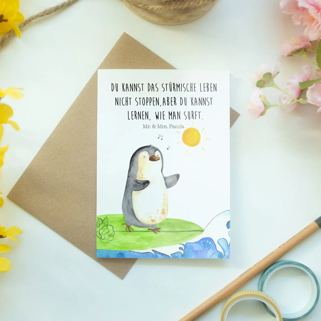 Willkommen in der wunderbaren Welt von Mr. & Mrs. Panda! Unsere Grußkarte mit dem süßen Pinguin Surfer ist das perfekte Geschenk für alle, die das Besondere lieben. Ob für einen Geburtstag, eine Hochzeit, oder einfach nur um jemandem ein Lächeln ins Gesicht zu zaubern - diese liebevolle Klappkarte ist die ideale Wahl.