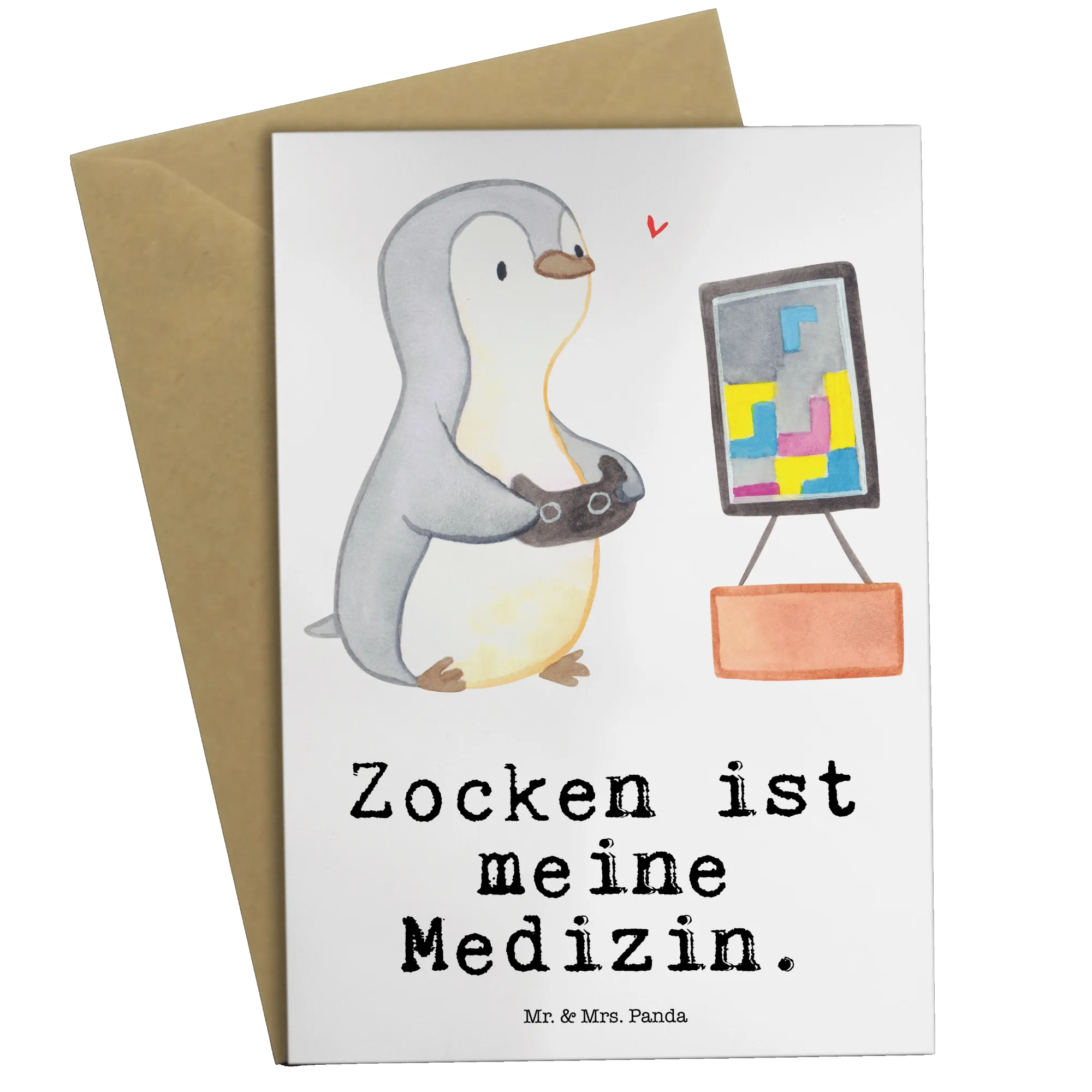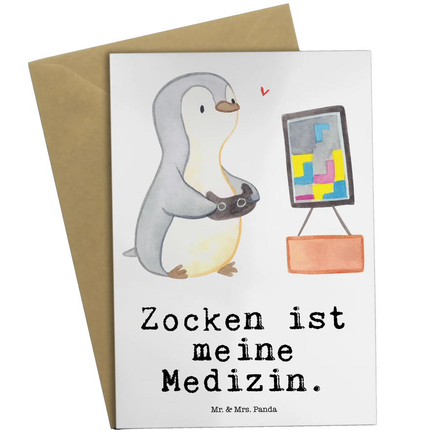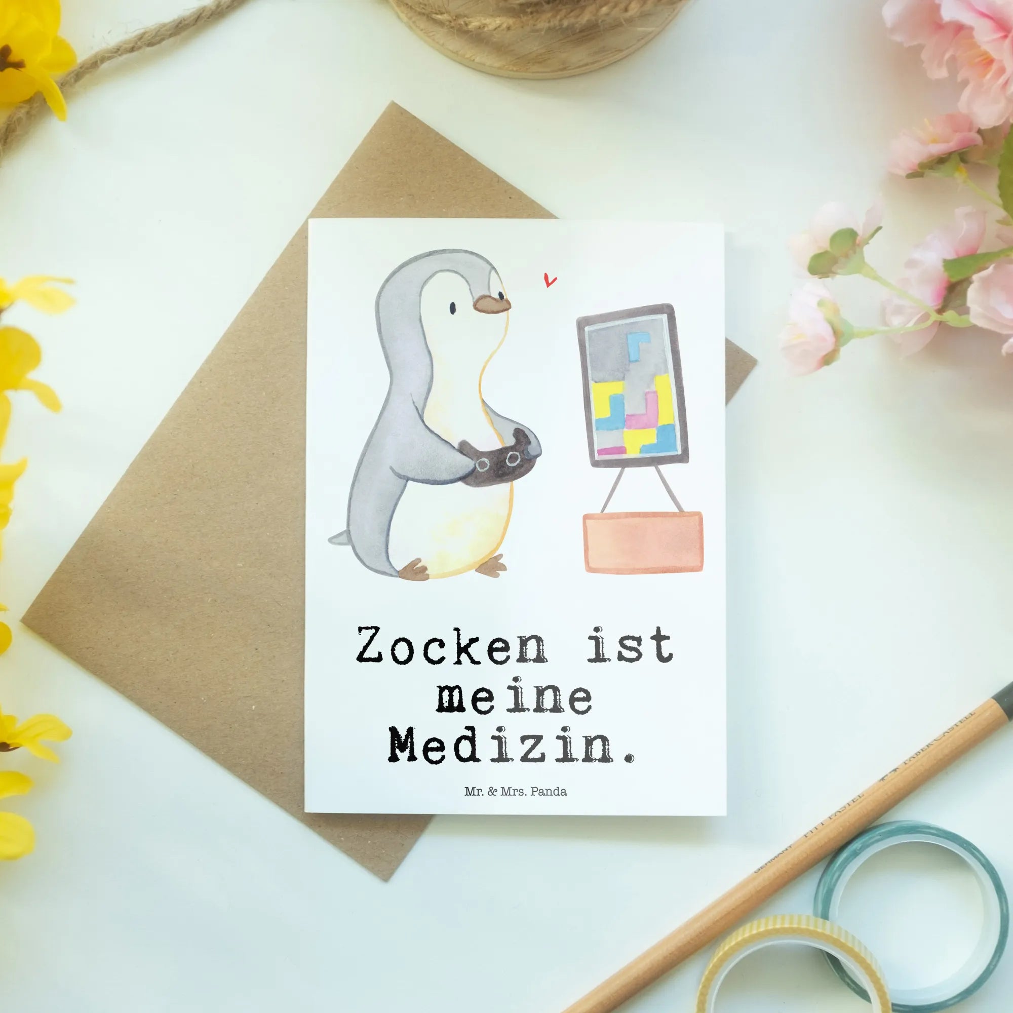 Wenn du auf der Suche nach einer perfekten Grußkarte für einen leidenschaftlichen Gamer bist, dann ist die Grußkarte "Pinguin Zocken Medizin" von Mr. & Mrs. Panda genau das Richtige für dich!