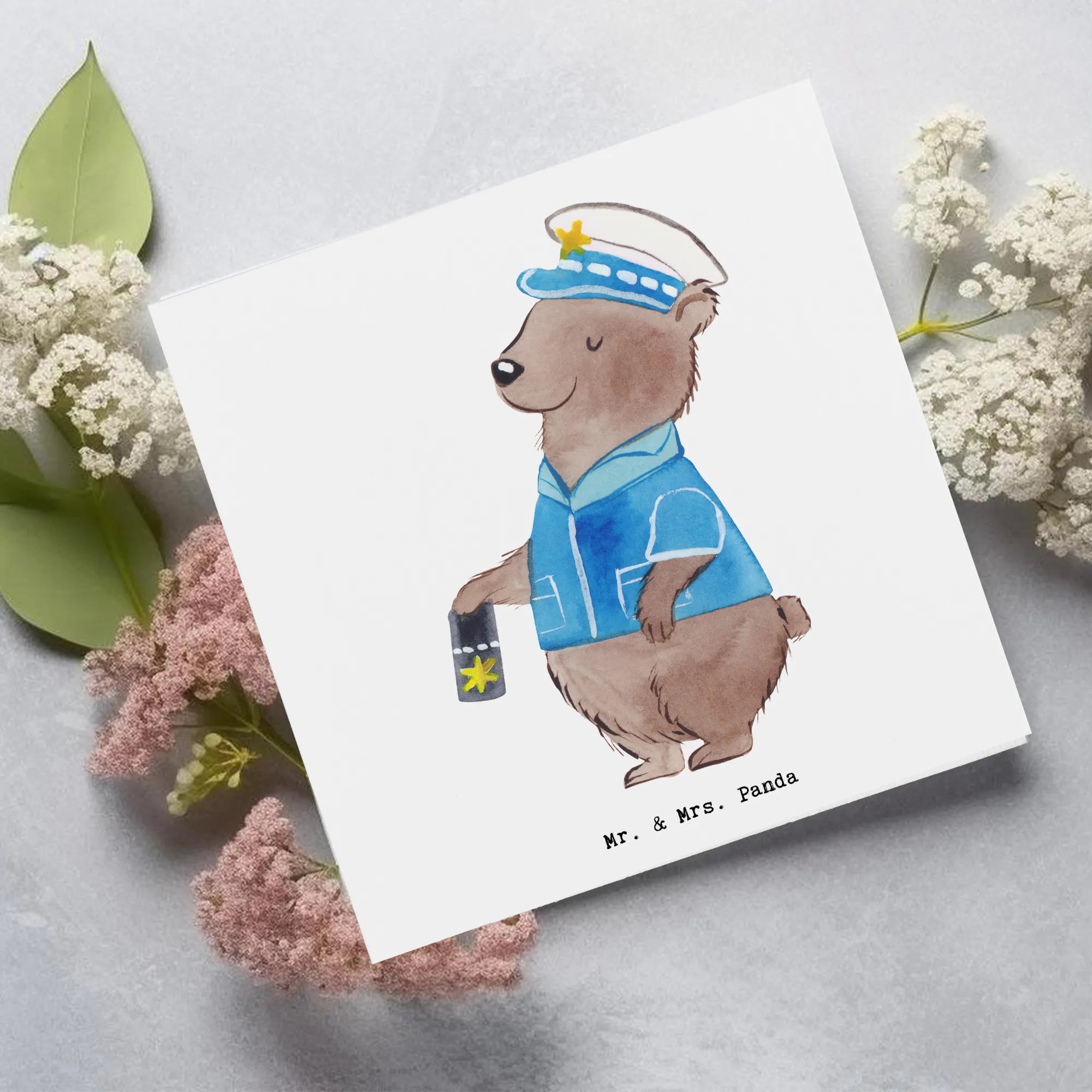 Die Berufe Kollektion von Mr. & Mrs. Panda umfasst eine Vielzahl liebevoll gestalteter Karten für unterschiedliche Berufe und Anlässe. Mit dieser Grußkarte bringst du Freude und eine Portion Humor in den Alltag der Polizeivollzugsbeamten und machst jedem von ihnen eine ganz besondere Freude. Schenke nicht nur eine Karte, sondern auch ein bisschen Mühe und liebevolle Gedanken – denn du weißt ja: Kleine Gesten können große Freude bereiten!