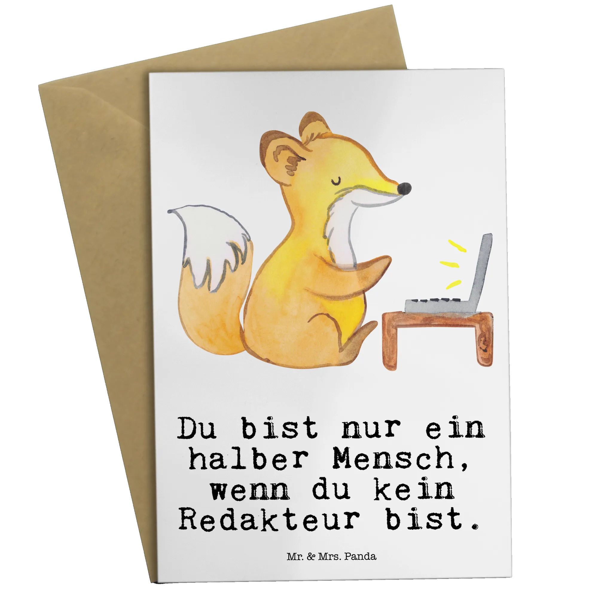 Die Grußkarte "Redakteur mit Herz" aus der kreativen Berufe-Kollektion von Mr. & Mrs. Panda ist das perfekte Geschenk für alle, die in der Welt des Journalismus zu Hause sind. Egal ob dein Freund, deine Freundin oder Kollege Redakteur, diese Karte reiht sich wunderbar in jede Sammlung von Geschenken ein!