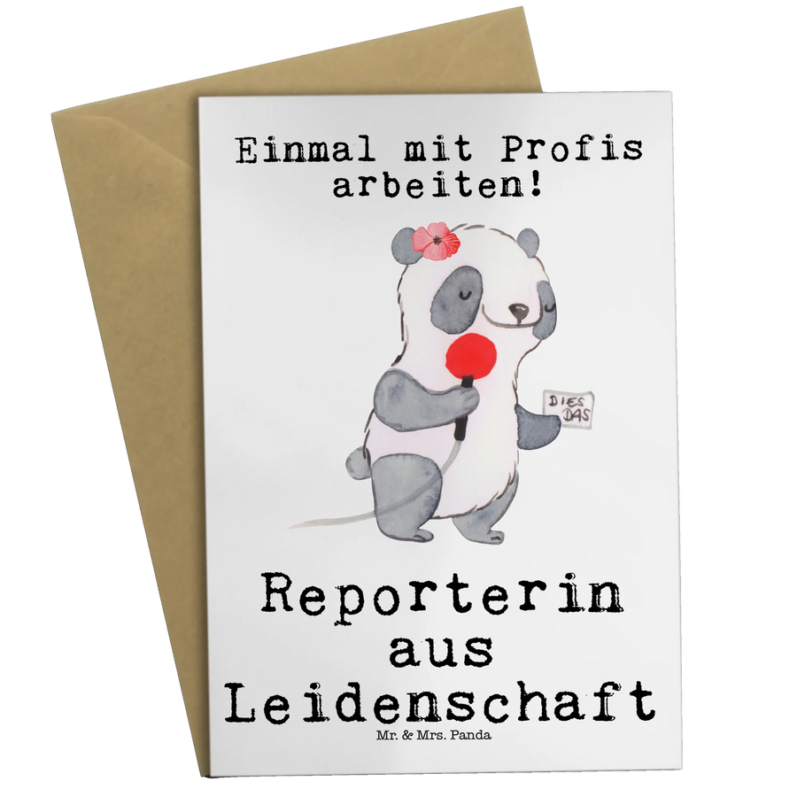 Die Grußkarte "Reporterin aus Leidenschaft" von Mr. & Mrs. Panda ist das perfekte Geschenk für alle Journalistinnen und Reporter, die ihre Leidenschaft für den Beruf leben. Diese wunderschöne Karte, illustriert mit einem süßen Panda, der ein Mikrofon in der Hand hält, bringt nicht nur Freude, sondern auch eine persönliche Note in jeden Anlass.