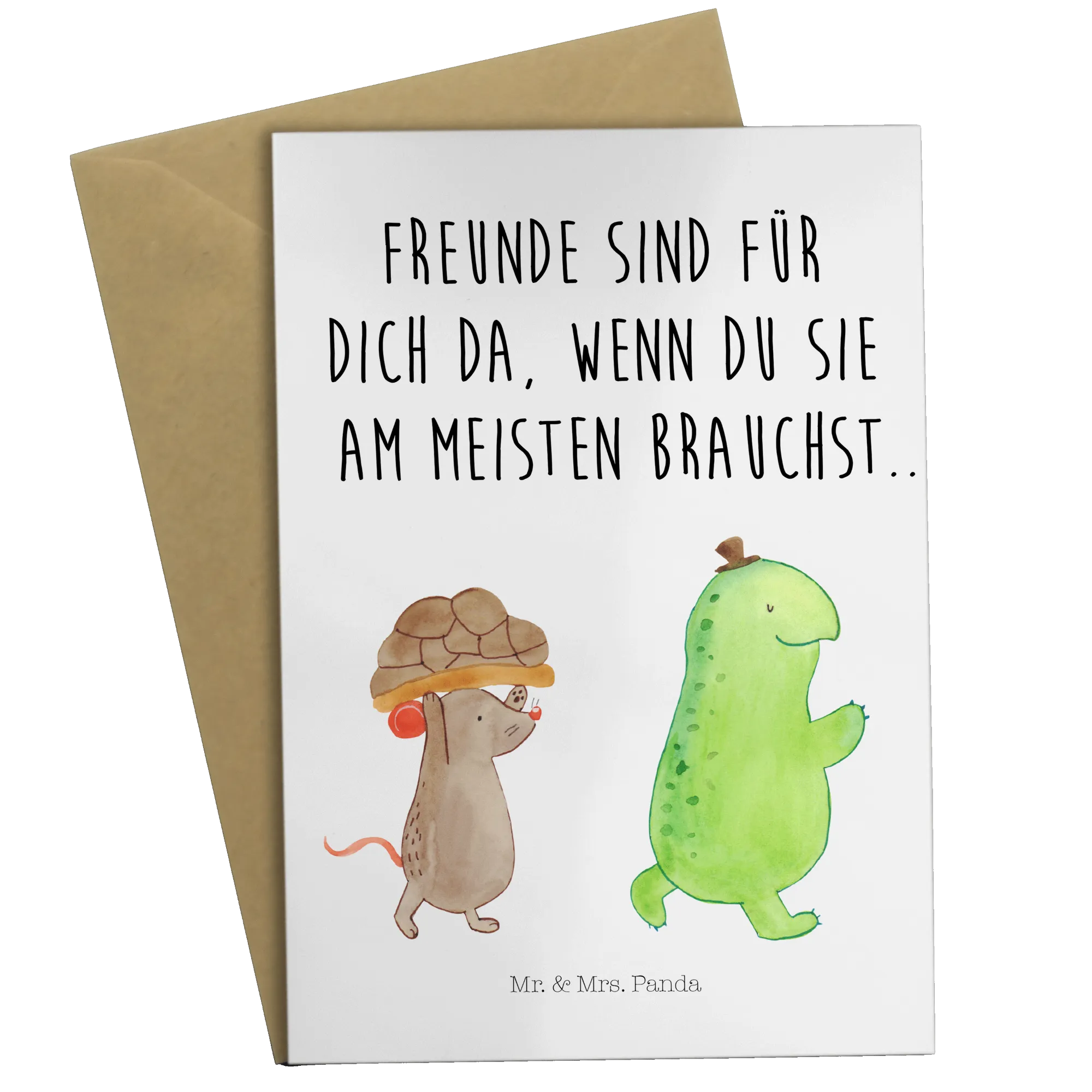 Die liebevolle Gestaltung zeigt eine fröhliche Schildkröte, die selbstbewusst voran marschiert, während eine kleine Maus flink ihren Schildkrötenpanzer trägt. Diese beiden niedlichen Charaktere begleiten dich durch viele festliche Anlässe und sind stets bereit, einen Glückwunsch oder einen persönlichen Gruß zu überbringen. Mit dem Spruch "Freunde sind für dich da, wenn du sie am meisten brauchst..." auf der Vorderseite, ist diese Karte besonders bedeutungsvoll.