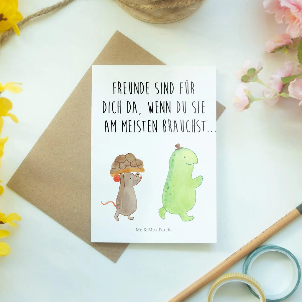 Grußkarte Schildkröte & Maus - mit Spruch - Weiß