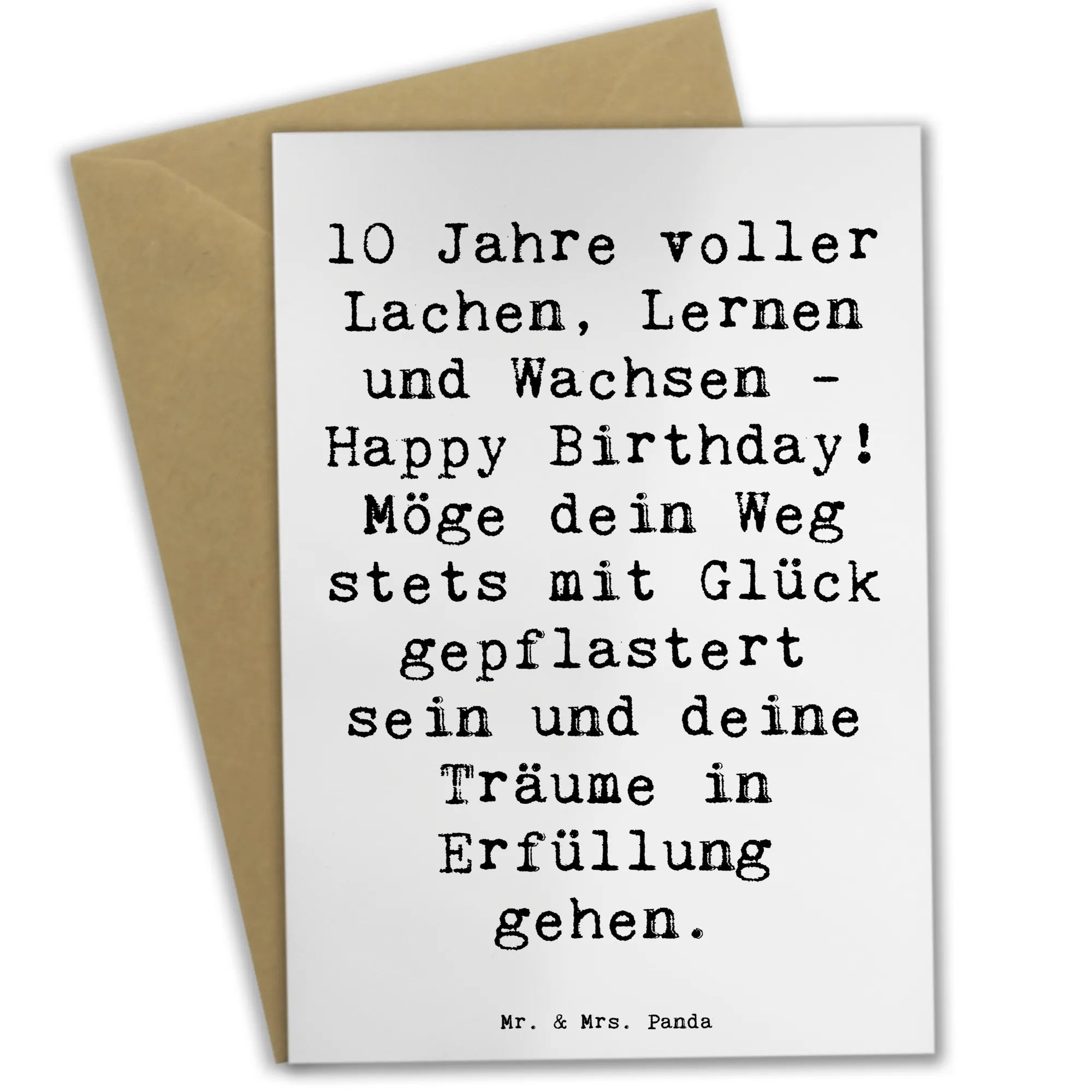 Die wunderschöne Grußkarte von Mr. & Mrs. Panda zum 10. Geburtstag ist das perfekte Geschenk, um diesen besonderen Tag zu feiern! Mit dem süßen Motiv "10 Jahre voller Lachen, Lernen und Wachsen - Happy Birthday! Möge dein Weg stets mit Glück gepflastert sein und deine Träume in Erfüllung gehen." ist diese Karte ideal für Freunde, Familienmitglieder oder die eigenen Kinder. Ob als Einladungskarte, Glückwunschkarte oder einfach als nette Geste – diese Karte begeistert Groß und Klein!