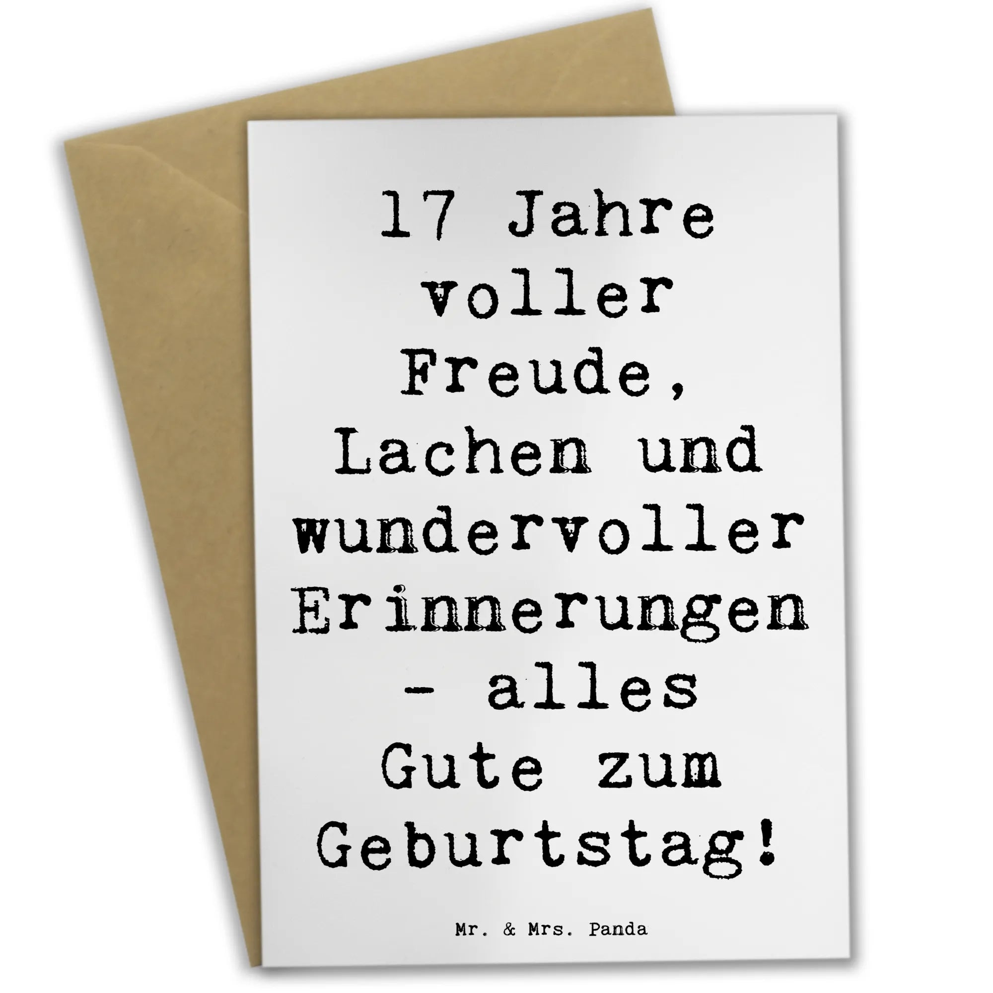 Willst du jemandem zum 17. Geburtstag gratulieren und ein Lächeln ins Gesicht zaubern? Dann ist die wunderschöne Grußkarte "17 Jahre voller Freude, Lachen und wundervoller Erinnerungen - alles Gute zum Geburtstag!" aus der Geburtstagskollektion von Mr. & Mrs. Panda genau das Richtige für dich! Diese besondere Klappkarte ist perfekt, um die Freude und die besonderen Momente eines so wichtigen Lebensjahres zu feiern.