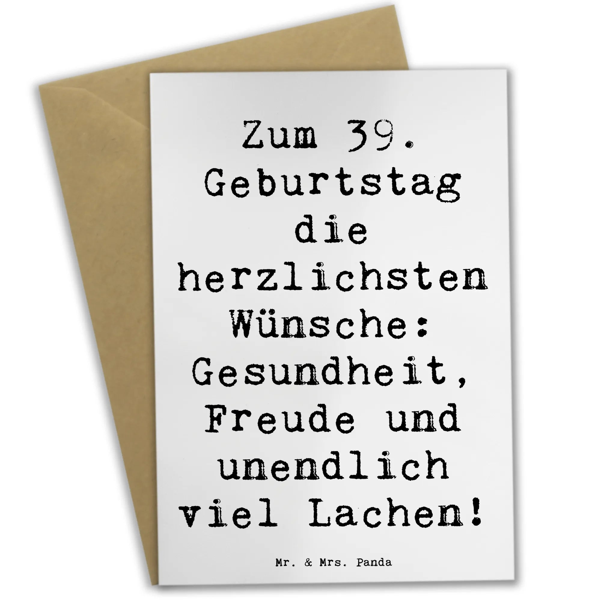 Mit dem liebevollen Spruch "Zum 39. Geburtstag die herzlichsten Wünsche: Gesundheit, Freude und unendlich viel Lachen!" trifft sie genau ins Herz. Diese einzigartige Grußkarte besticht nicht nur durch ihren herzlichen Text, sondern auch durch ihr schönes und ansprechendes Design, das Freude und Glück ausstrahlt.
