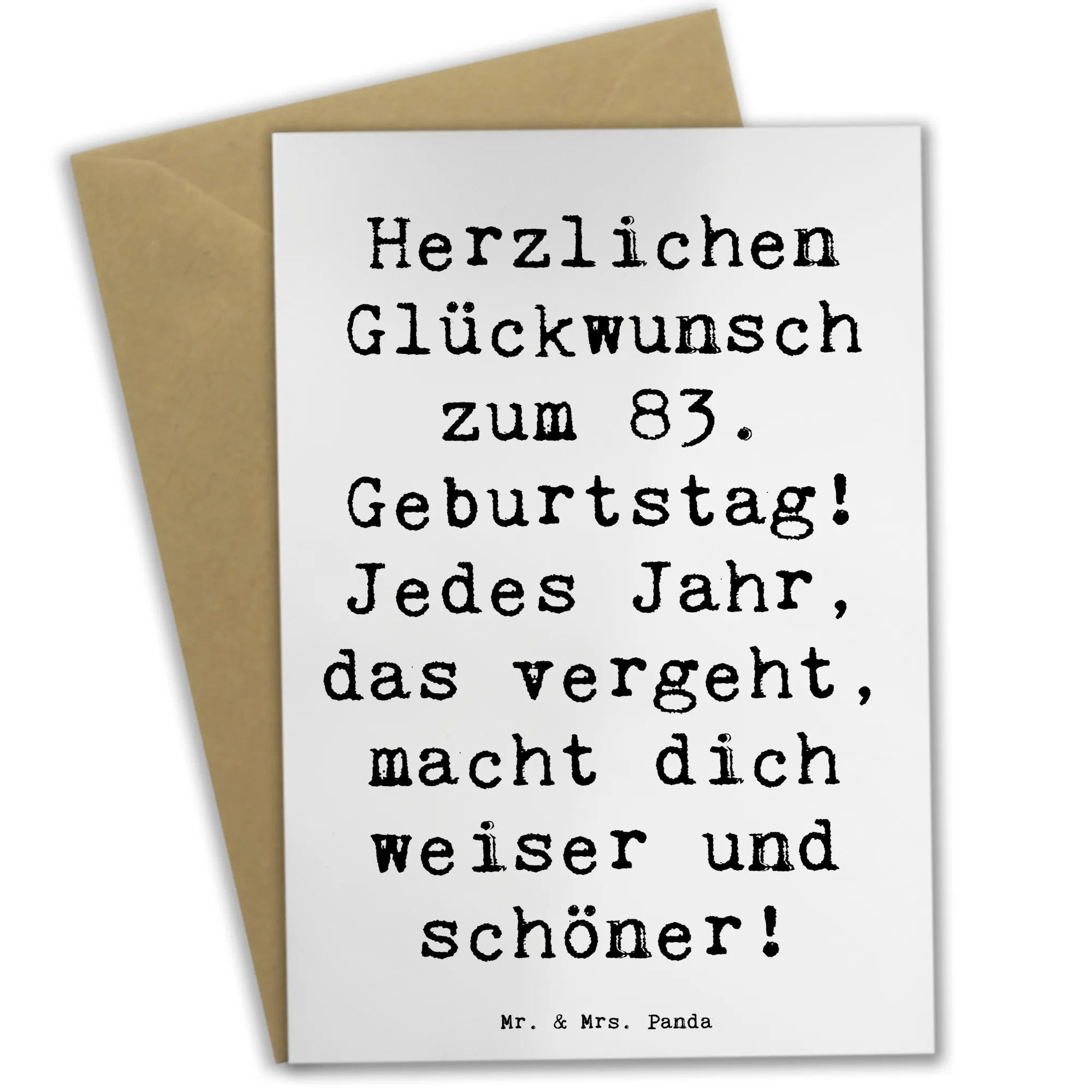 Du bist auf der Suche nach einem besonderen Geschenk zum 83. Geburtstag? Mit unserer liebevoll gestalteten Grußkarte von Mr. & Mrs. Panda bringst du Freude und Herzlichkeit in den großen Tag! Diese Karte ist mehr als nur ein Stück Papier – sie ist eine Botschaft voller Glückwünsche und Lebensfreude. Der Slogan "Herzlichen Glückwunsch zum 83. Geburtstag! Jedes Jahr, das vergeht, macht dich weiser und schöner!" zaubert garantiert ein Lächeln auf das Gesicht des Geburtstagskindes.