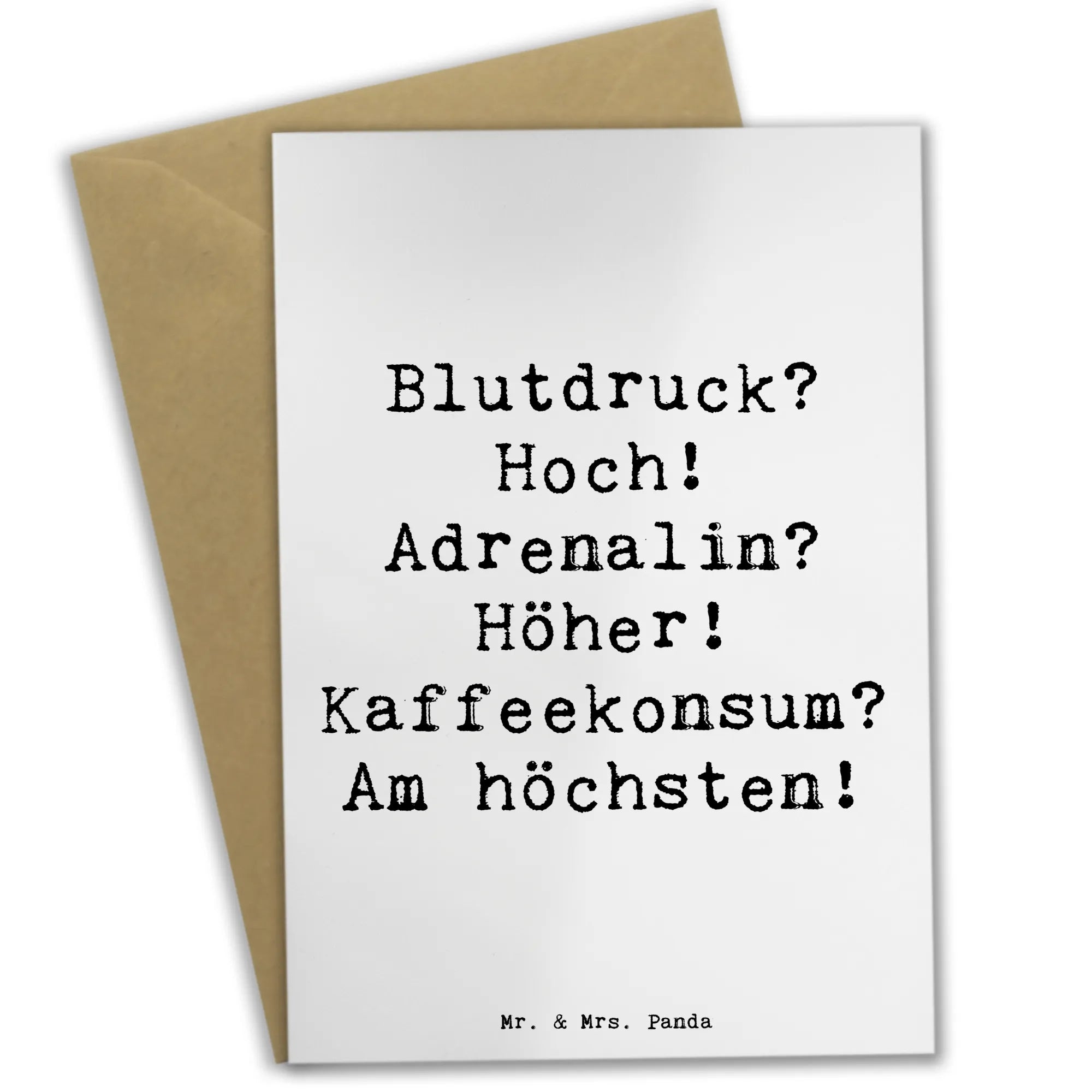 Mit dem auffälligen Slogan „Blutdruck? Hoch! Adrenalin? Höher! Kaffeekonsum? Am höchsten!“ setzt diese Karte ein humorvolles Statement und sorgt für Schmunzeln und Freude.