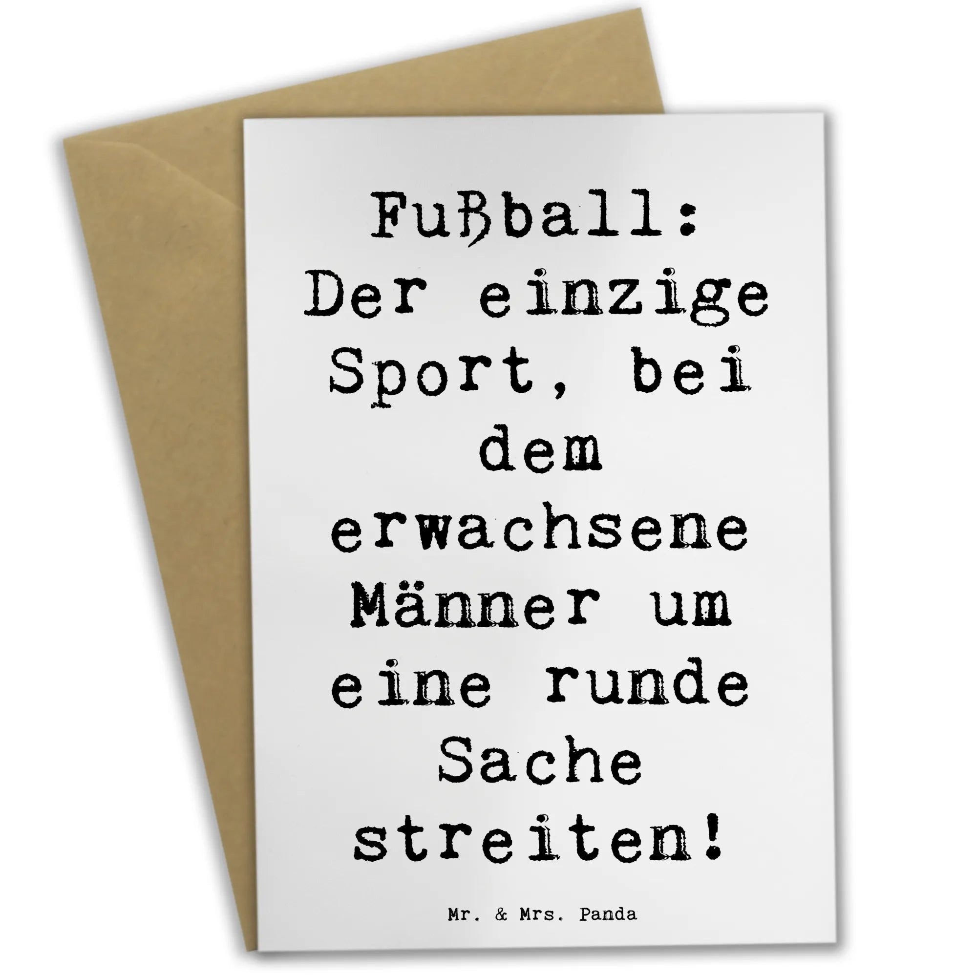 Die wunderschöne Grußkarte "Fußball: Der einzige Sport, bei dem erwachsene Männer um eine runde Sache streiten!" von Mr. & Mrs. Panda ist das perfekte Geschenk für jeden Fußballfan! Egal ob zum Geburtstag, zu Hochzeiten oder einfach nur so, diese Karte bringt mit ihrem humorvollen Spruch ein Lächeln auf jedes Gesicht.