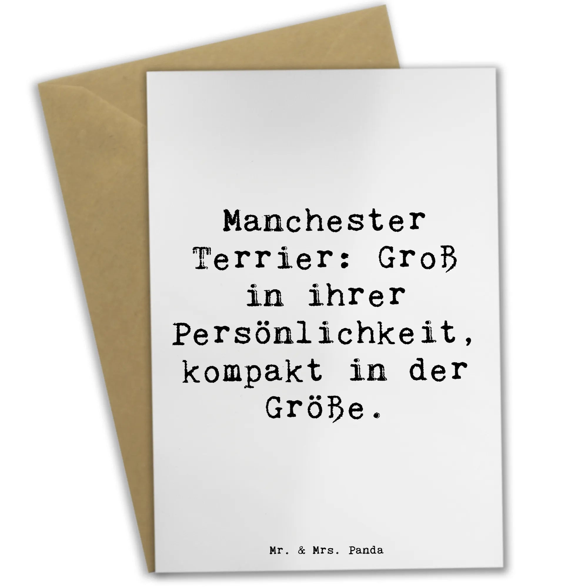 Mit dem liebevoll gestalteten Motiv des Manchester Terriers und dem witzigen Spruch "Manchester Terrier: Groß in ihrer Persönlichkeit, kompakt in der Größe." bringt die Karte Freude und Liebe in jede Botschaft. Die Vorderseite dieser vielseitigen Klappkarte zeigt das süße Hundemotiv, während die matte Innenseite ausreichend Platz für Deine persönlichen Grüße oder Glückwünsche bietet.