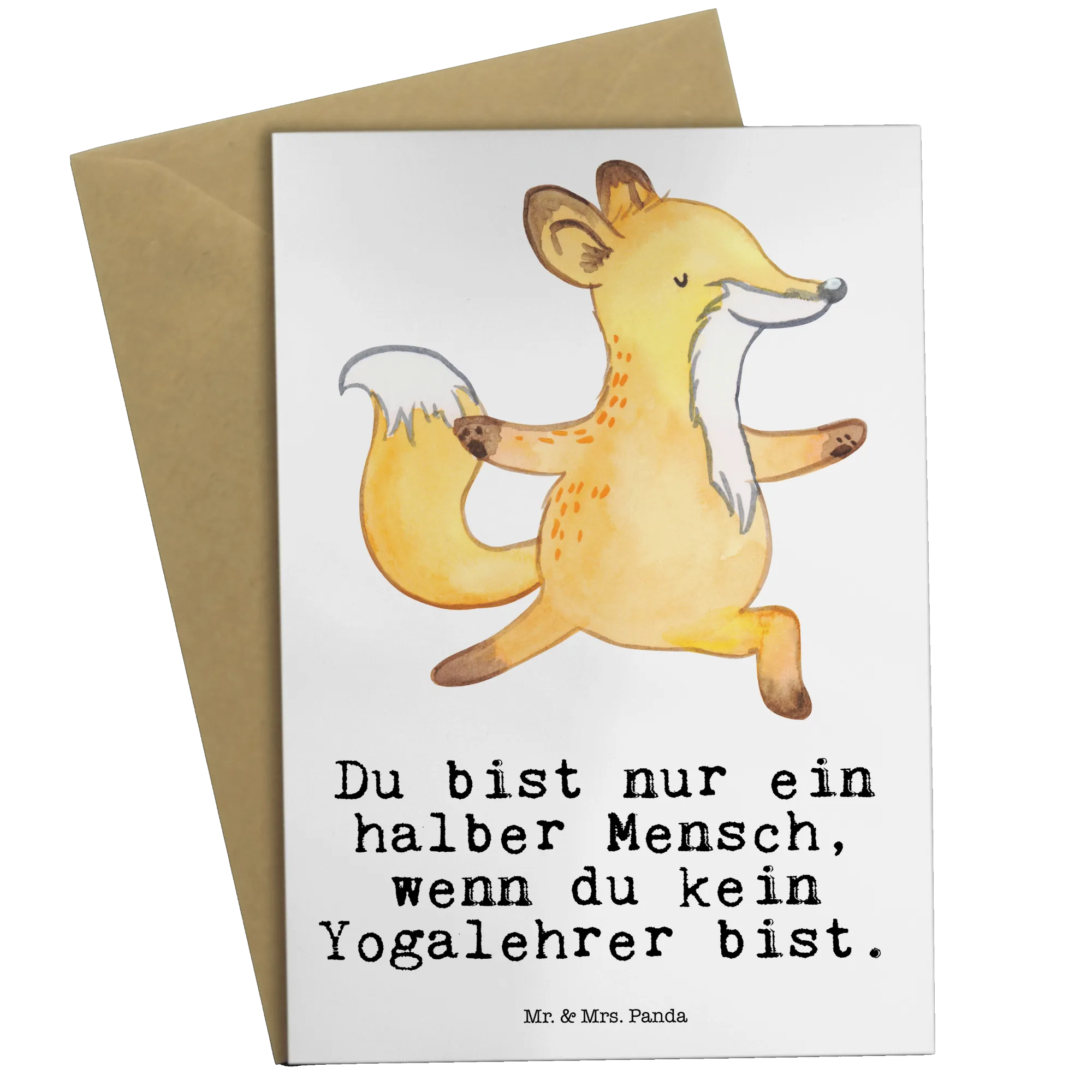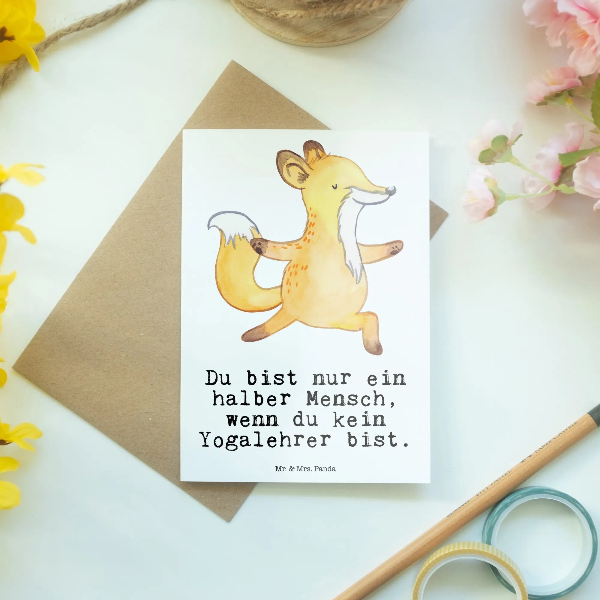 Die Grußkarte "Yogalehrer mit Herz" von Mr. & Mrs. Panda ist der perfekte Weg, um deine Dankbarkeit oder Glückwünsche auszudrücken. Dieses bezaubernde Design zeigt einen süßen Fuchs, der in der Krieger-Yoga-Stellung die Liebe zum Yoga verkörpert. Wenn du deinen Freunden, Kollegen oder Familienangehörigen zu besonderen Anlässen gratulieren möchtest, ist diese Karte genau das Richtige.