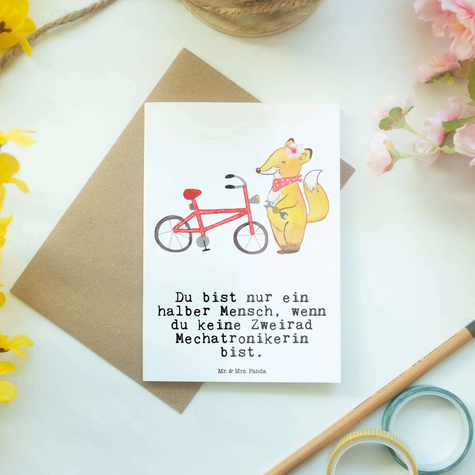 Die Grußkarte "Zweirad Mechatronikerin mit Herz" aus der Berufe-Kollektion von Mr. & Mrs. Panda ist das perfekte Geschenk für alle Zweirad Mechatronikerinnen und ihre Freunde. Diese liebevoll gestaltete Karte bringt nicht nur ein Lächeln auf die Lippen, sondern eignet sich hervorragend für zahlreiche Anlässe.