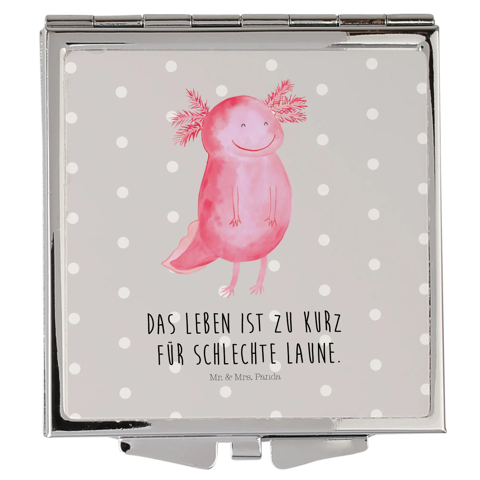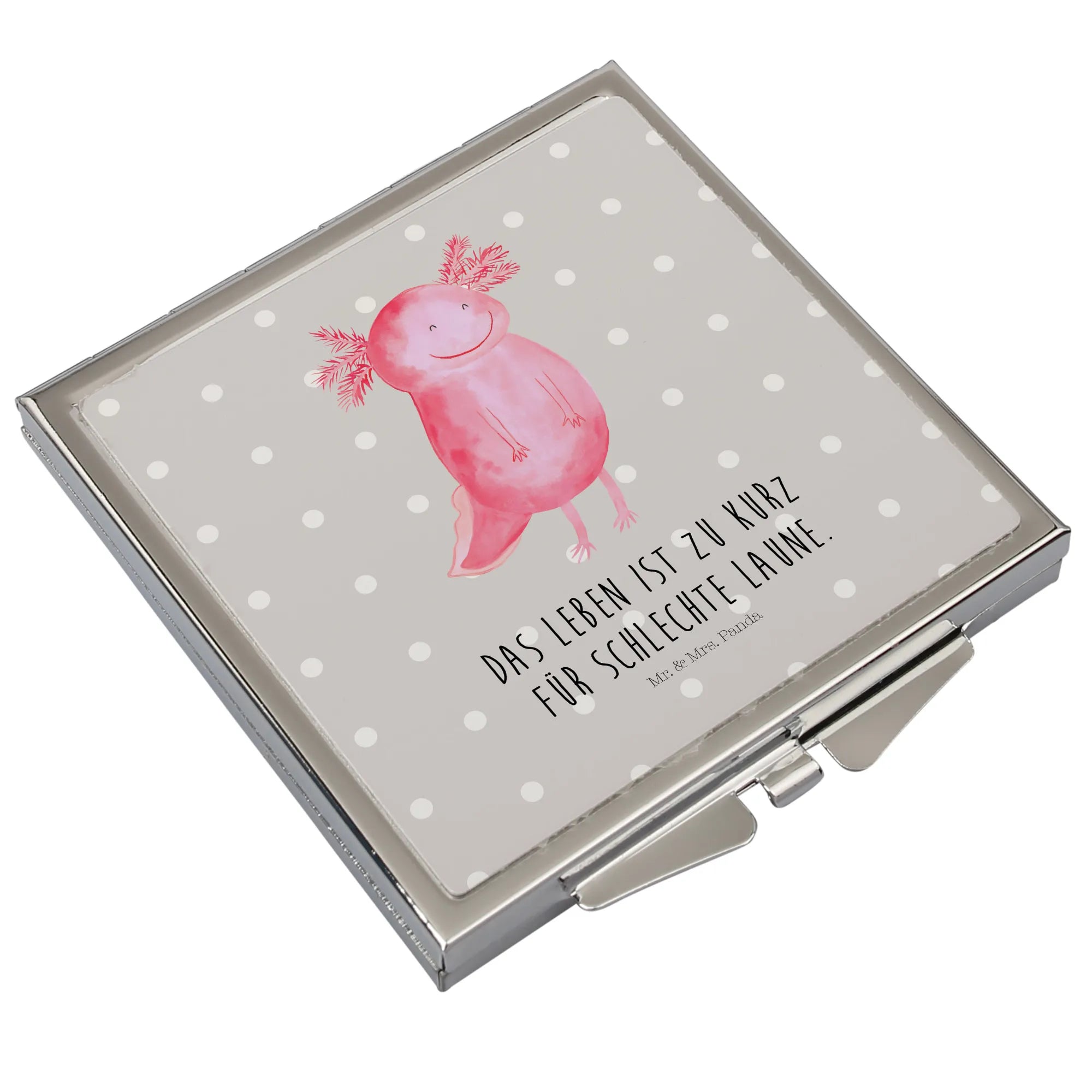 Handtaschenspiegel quadratisch Axolotl Glücklich - mit Spruch - Grau Pastell