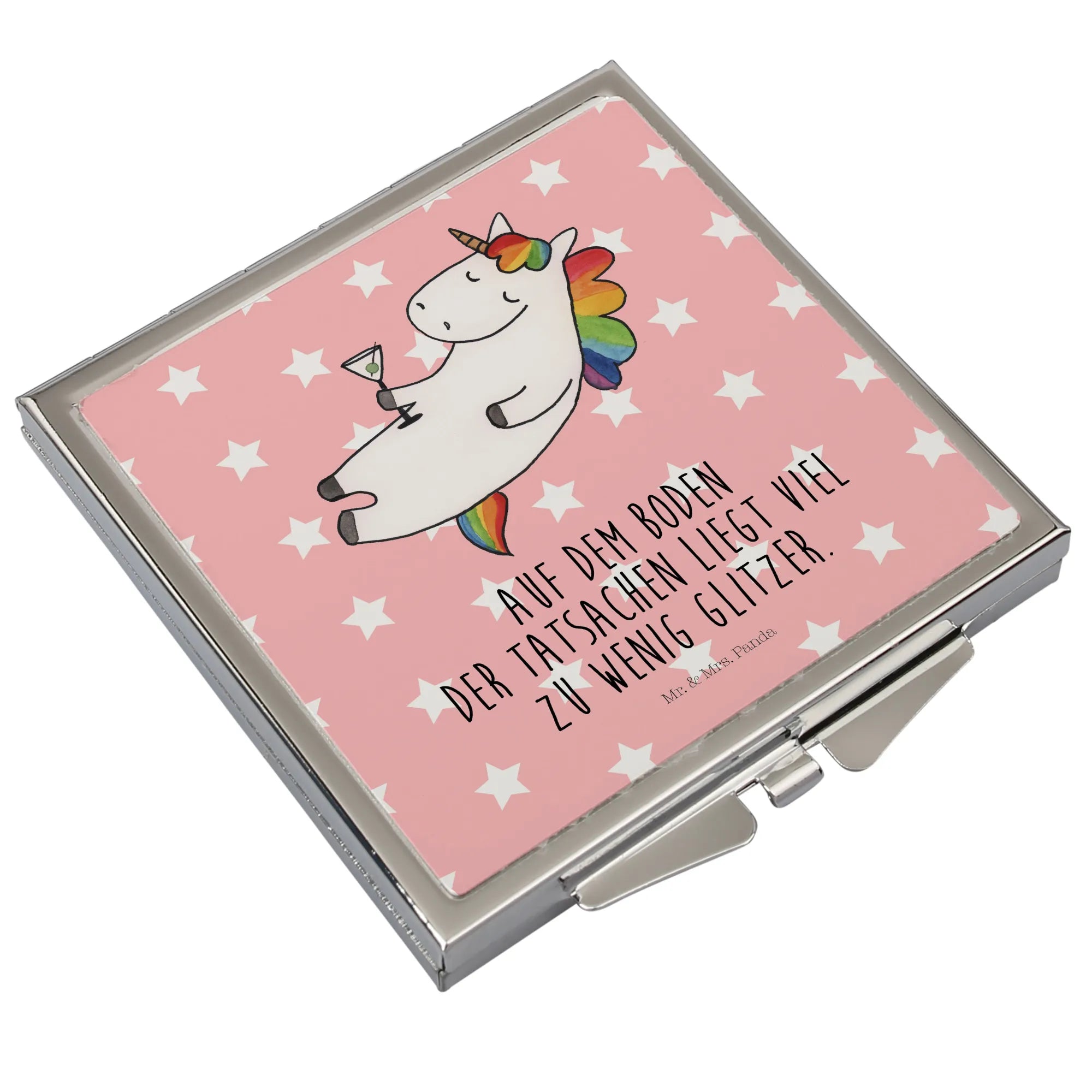 Mr. & Mrs. Panda Handtaschenspiegel quadratisch – Einhorn Cocktail