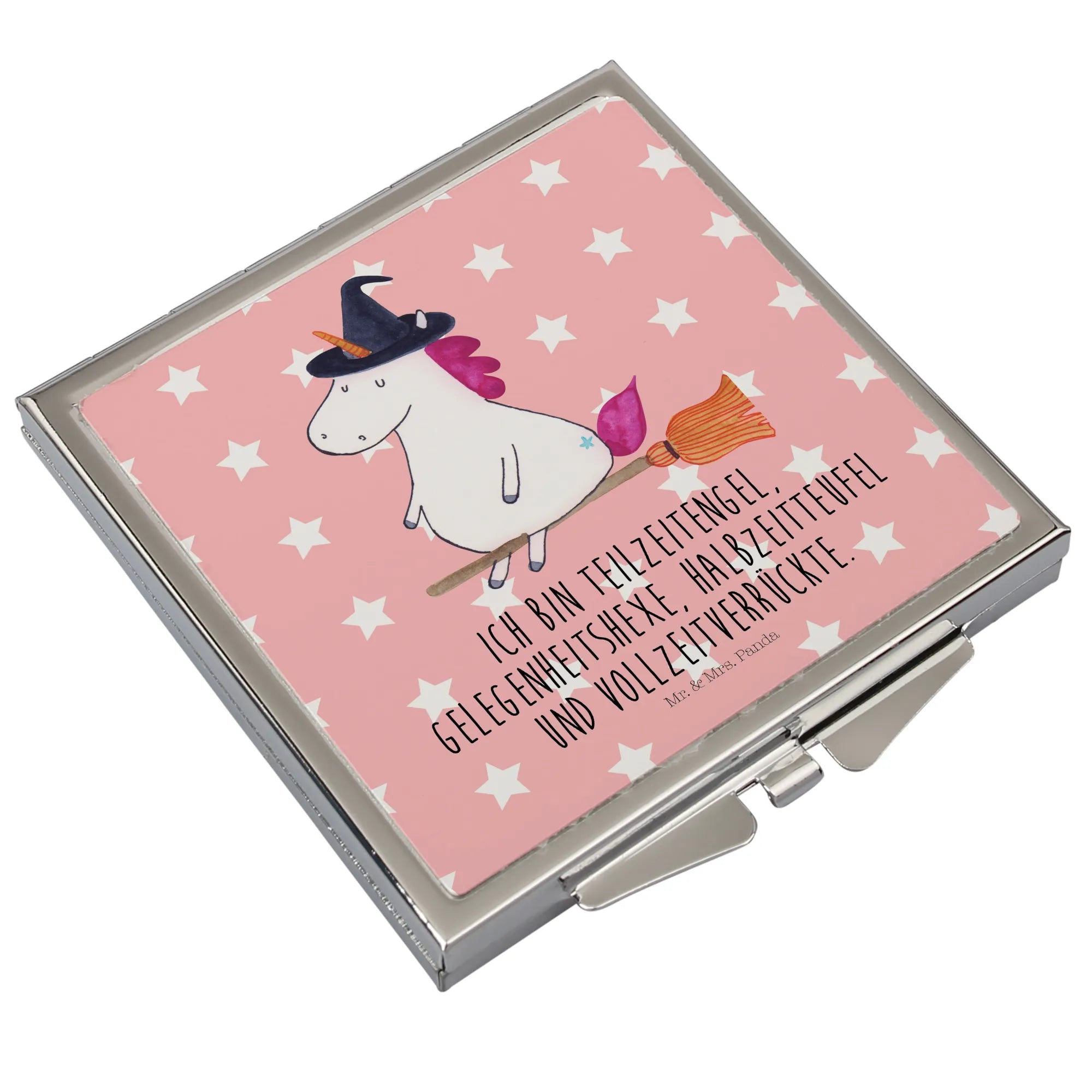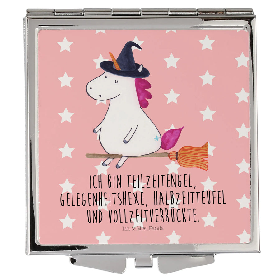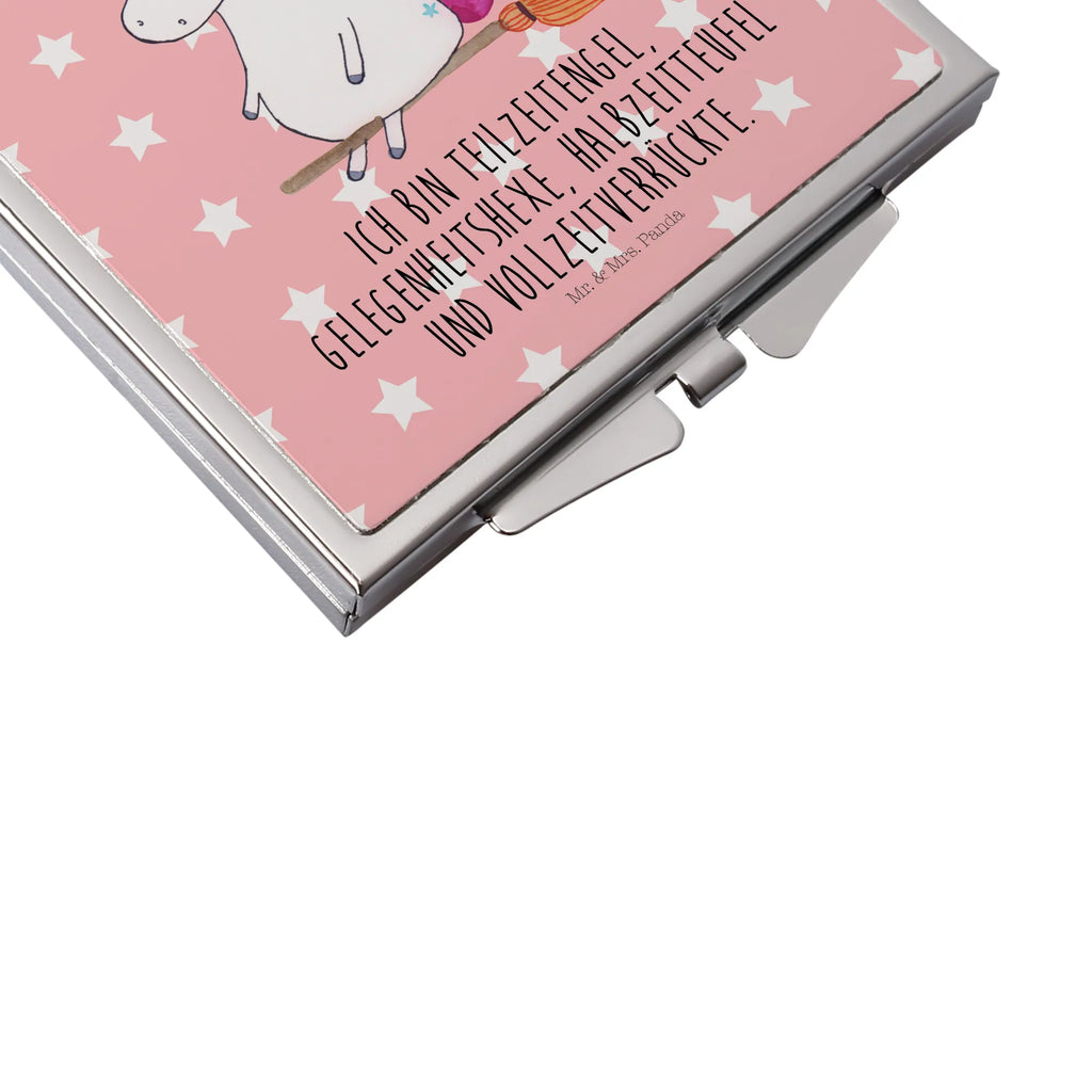 Handtaschenspiegel quadratisch Einhorn Hexe - mit Spruch - Rot Pastell