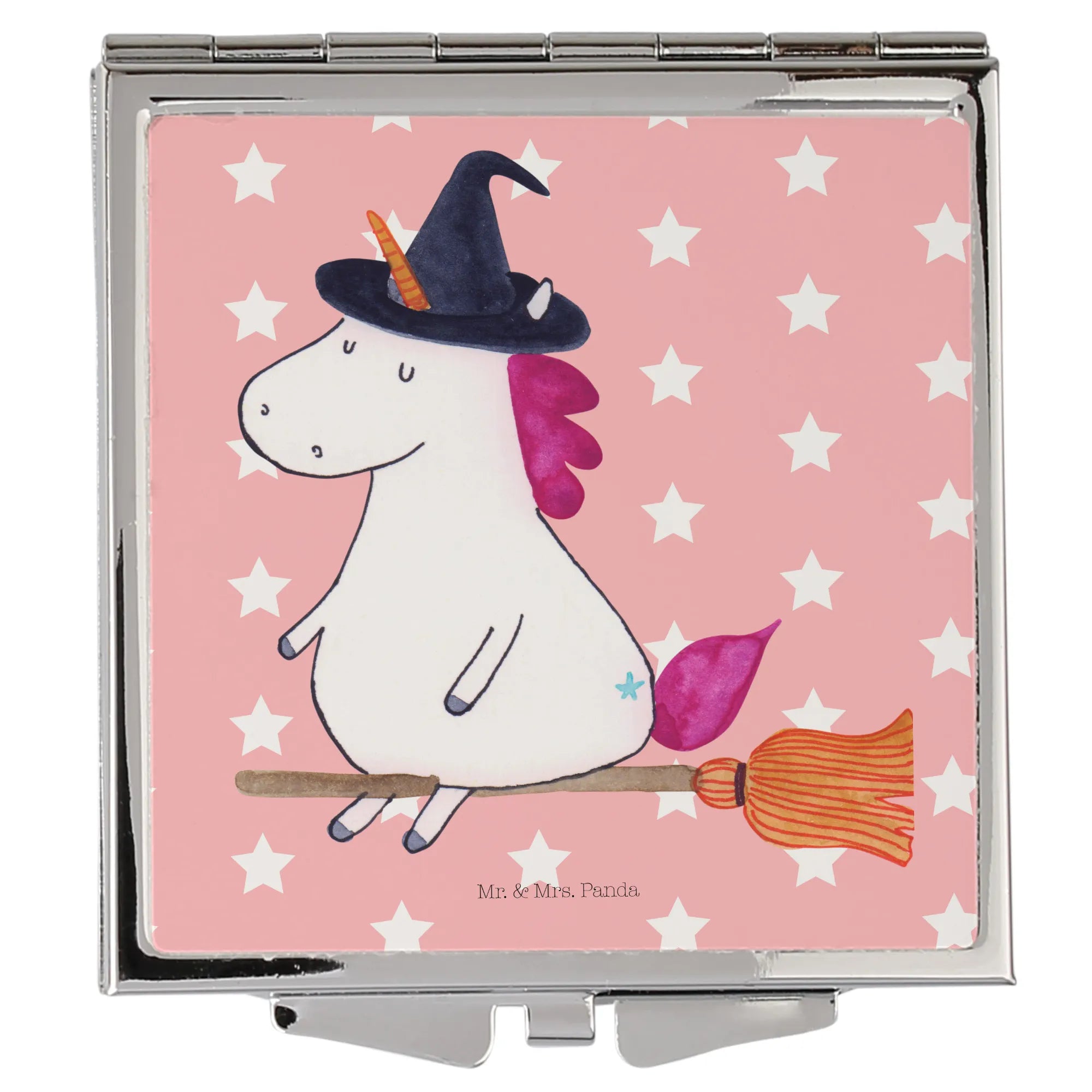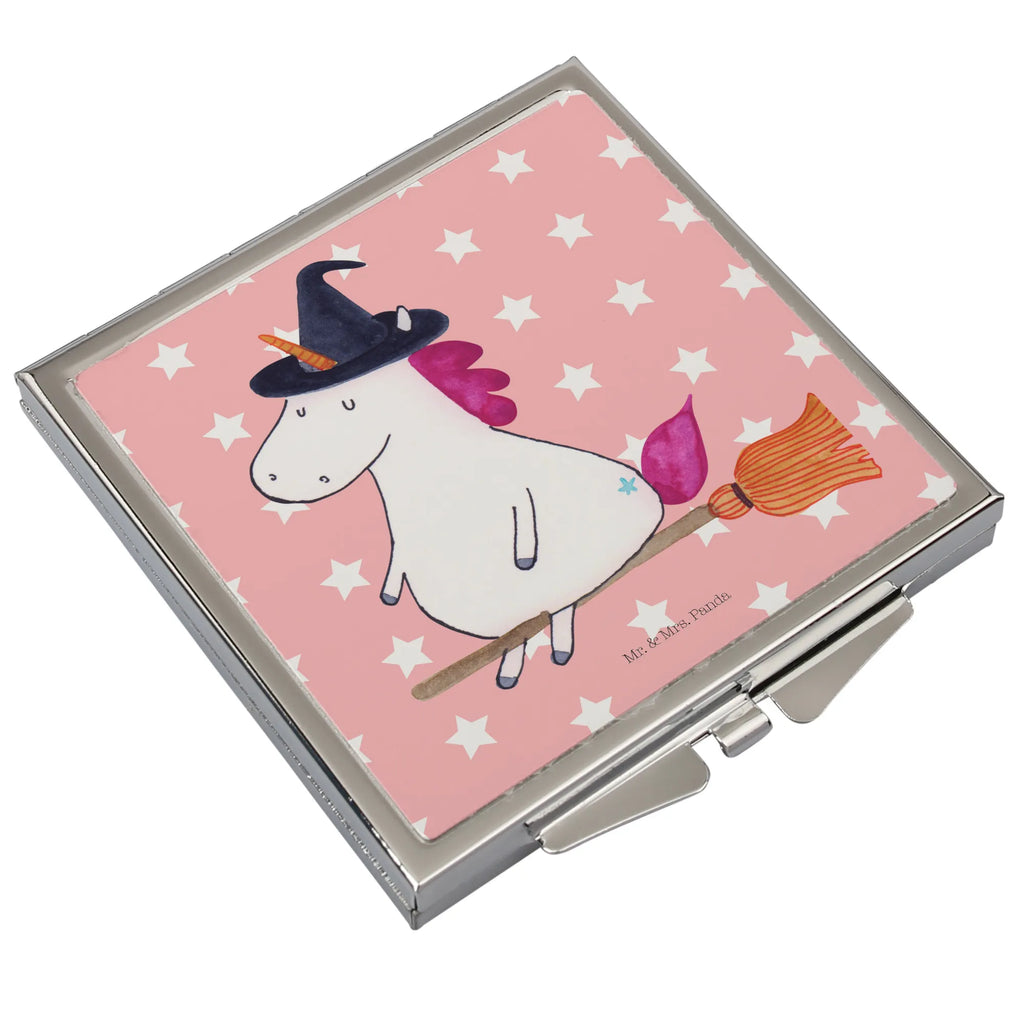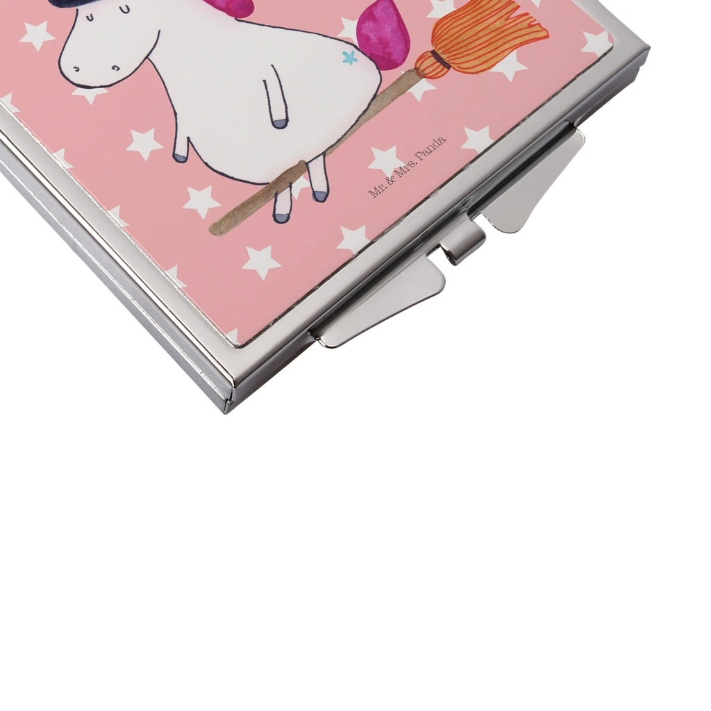 Handtaschenspiegel quadratisch Einhorn Hexe - mit Spruch - Rot Pastell