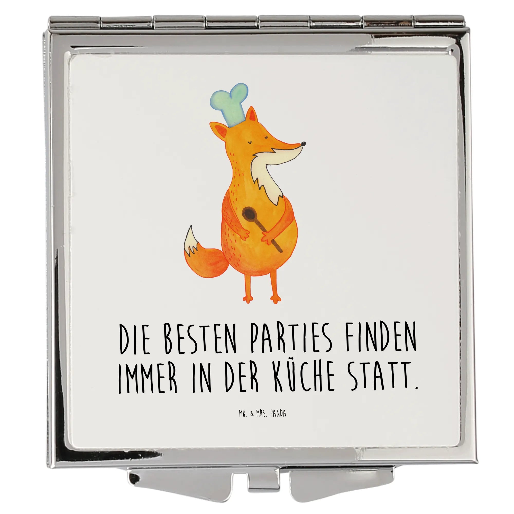 Handtaschenspiegel quadratisch Fuchs Koch - mit Spruch - Weiß