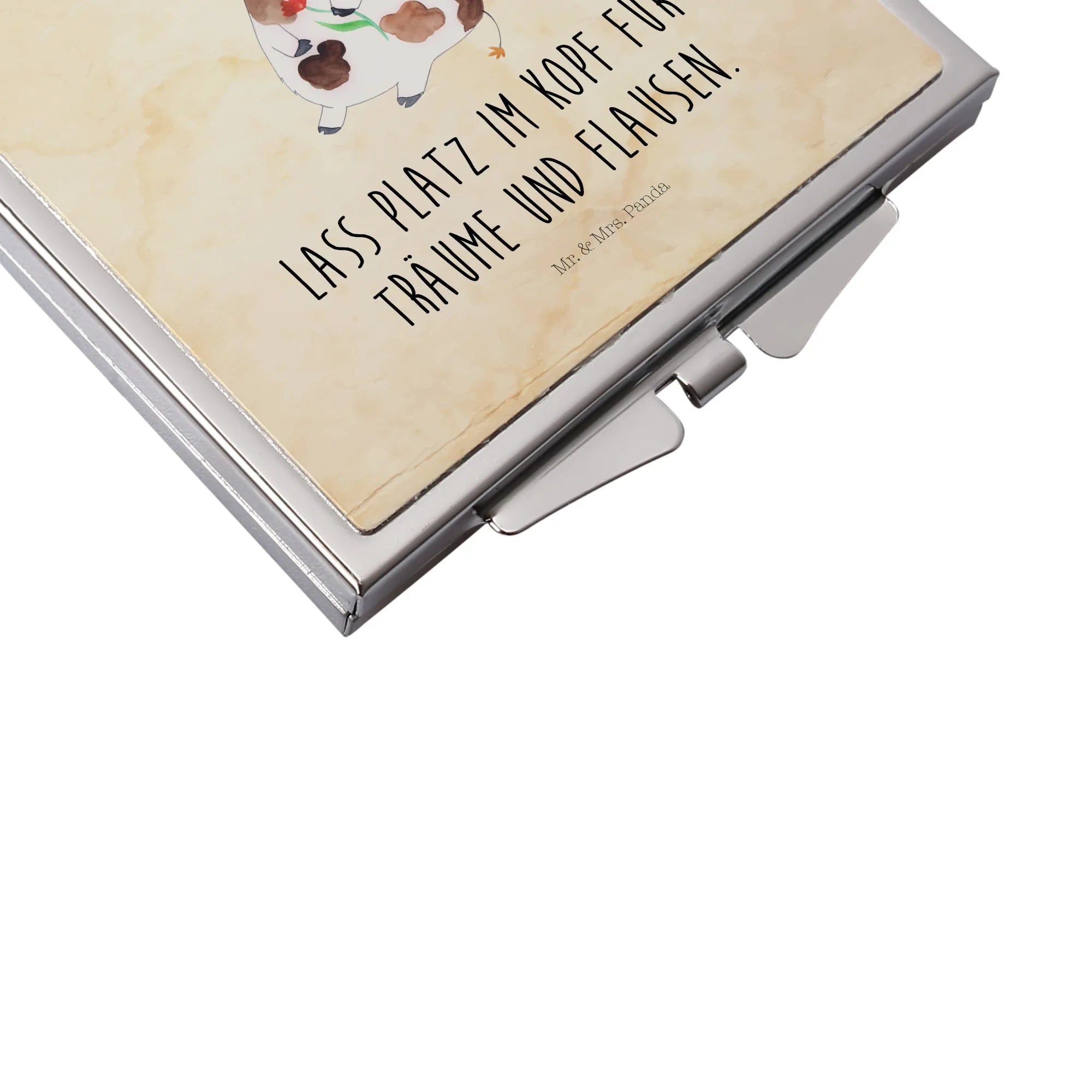 Handtaschenspiegel quadratisch Kuh - mit Spruch - Vintage