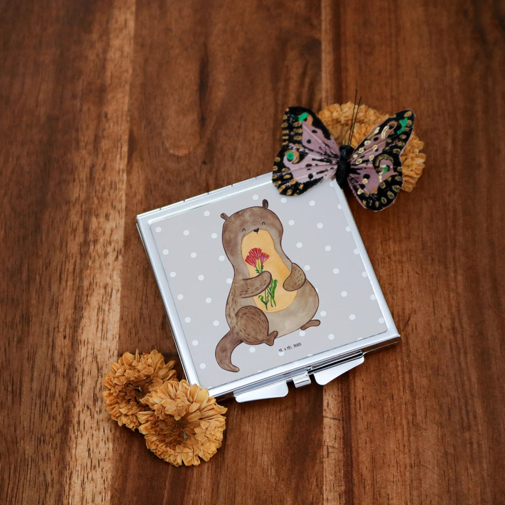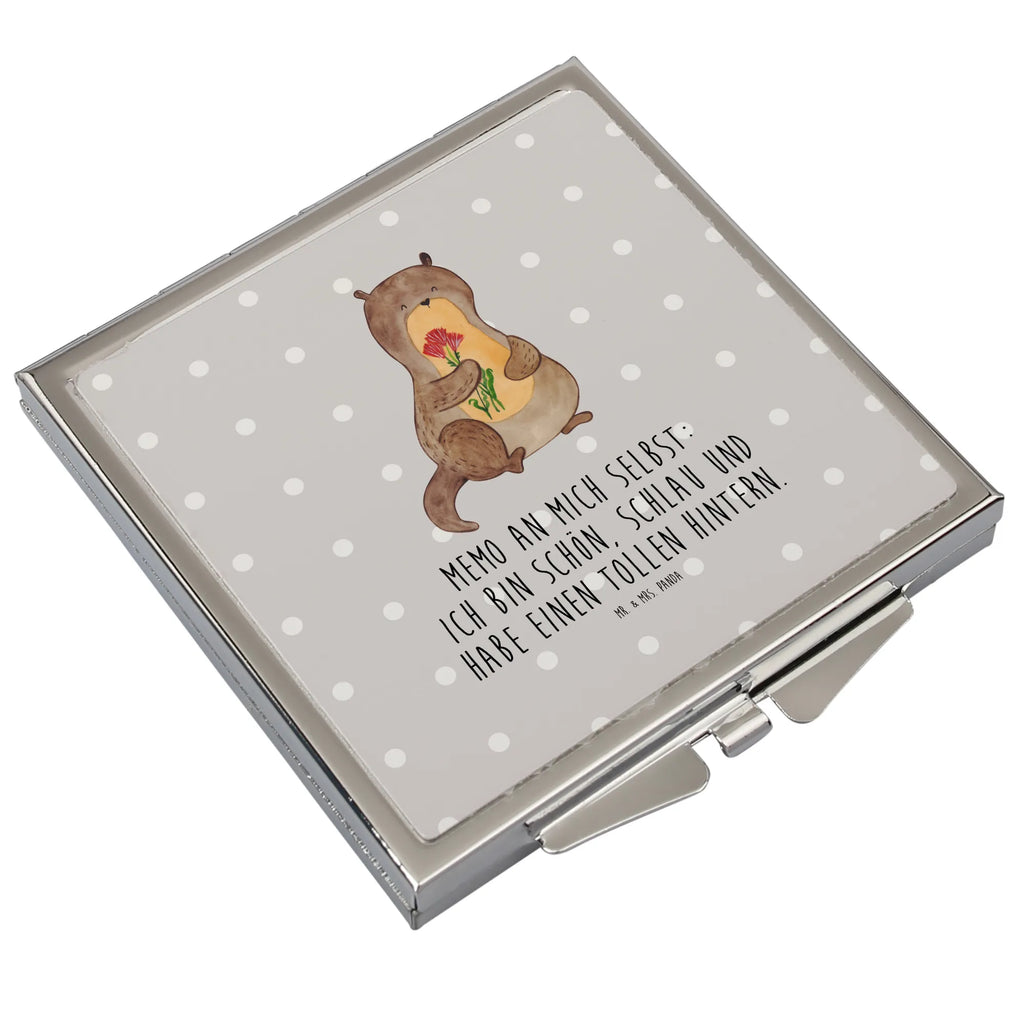 Handtaschenspiegel quadratisch Otter Blumenstrauß - mit Spruch - Grau Pastell