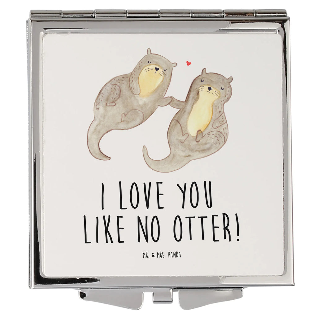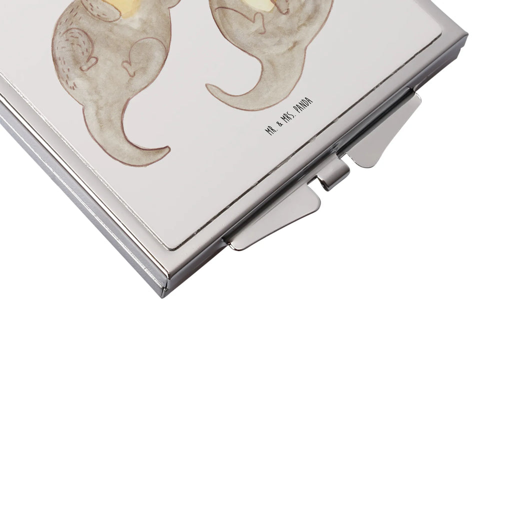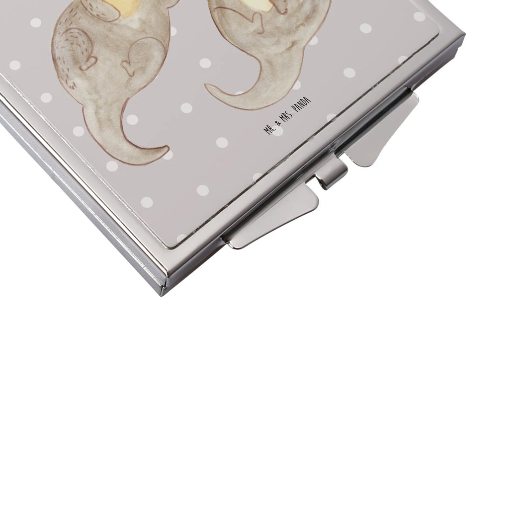 Handtaschenspiegel quadratisch Otter Hände halten - mit Spruch - Grau Pastell